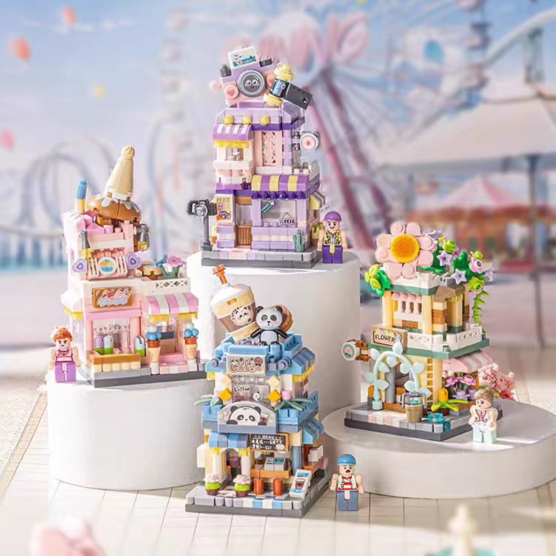 Coffee Shop Cola Shop Shoe Shop Ice Cream shop Street View Building blocks, fun furniture building blocks, toy for kids