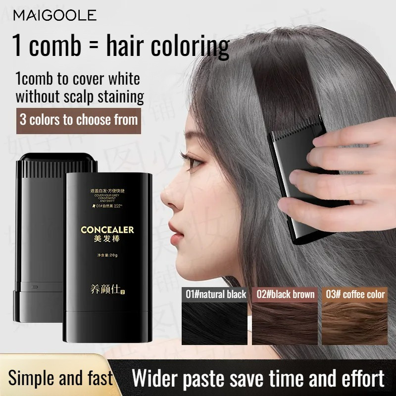 【Genuine Product】Hair Color Stick Quick Cover for Gray Hair Waterproof Sweatproof Natural Black Hair Touch-Up Stick