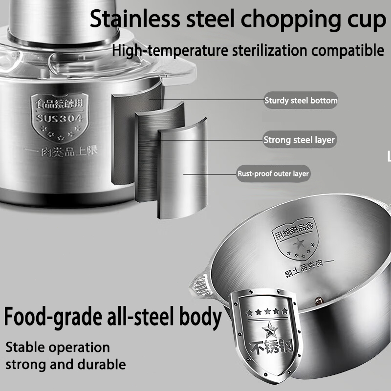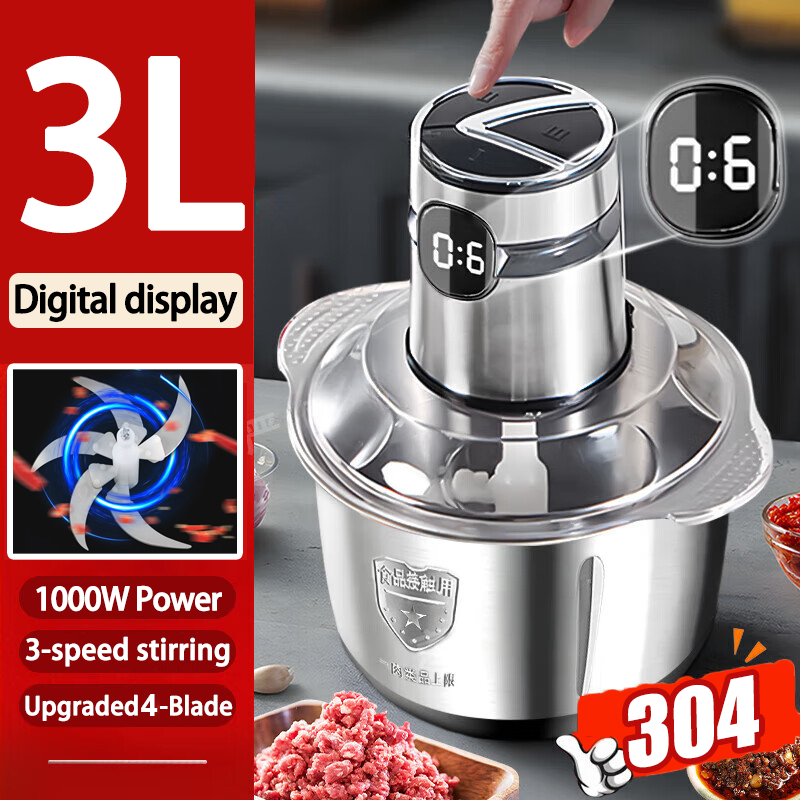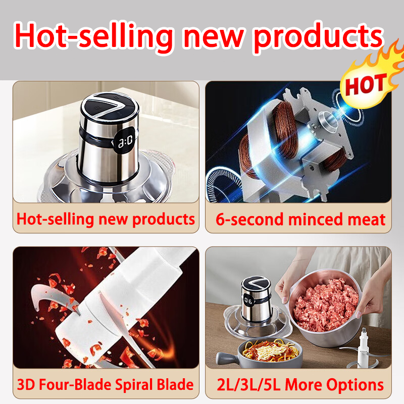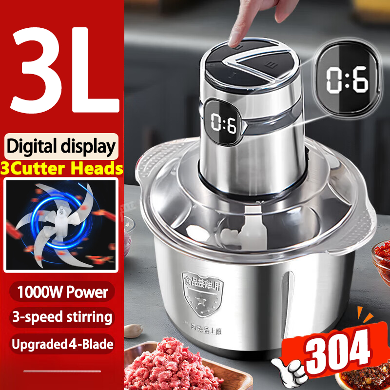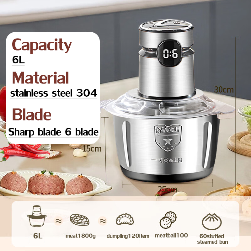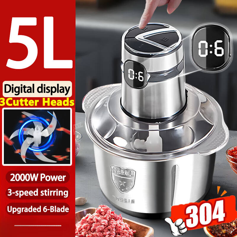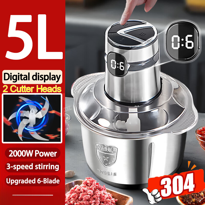 【Digital Display】Electric Meat Grinder heavy duty food processor 5L Capacity Stainless Steel Blender