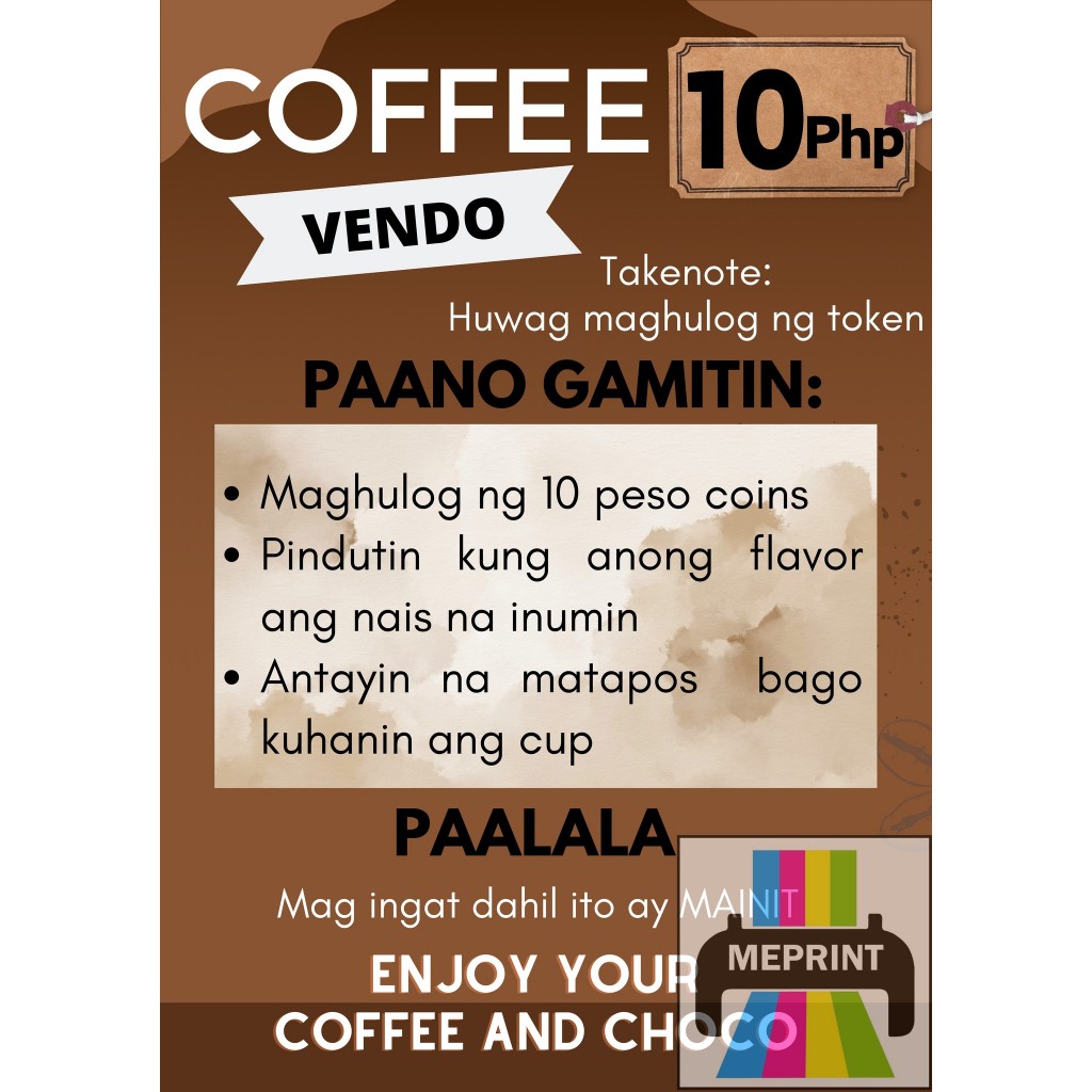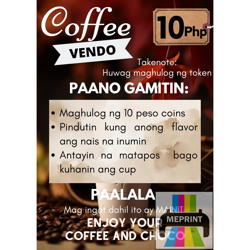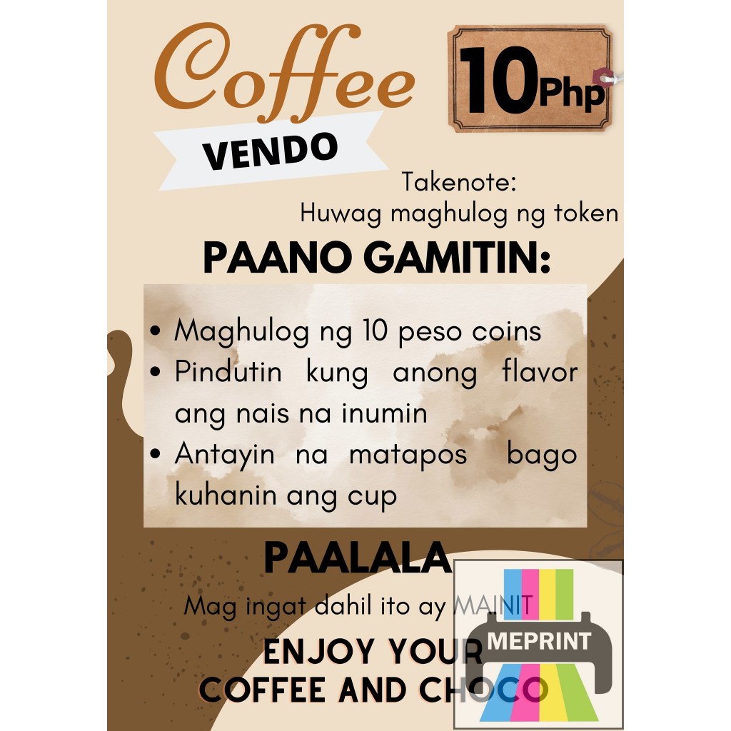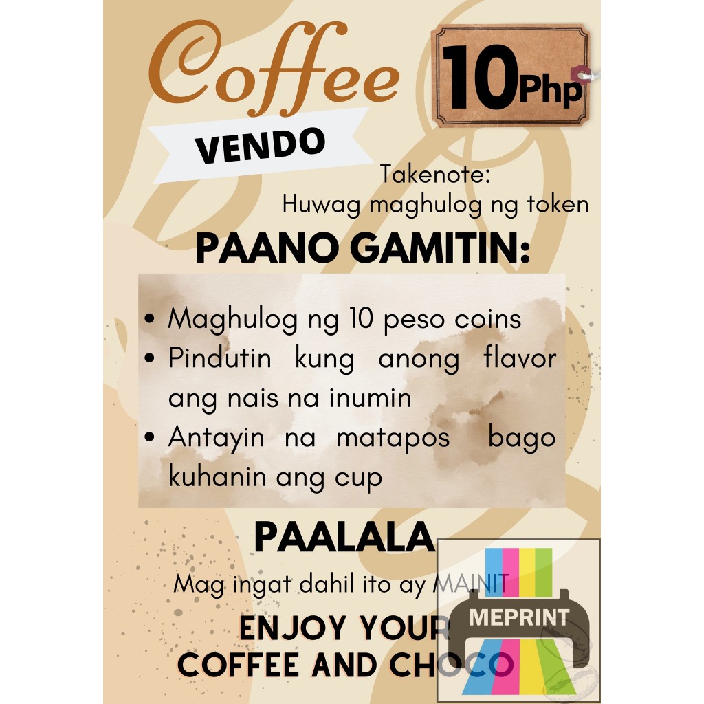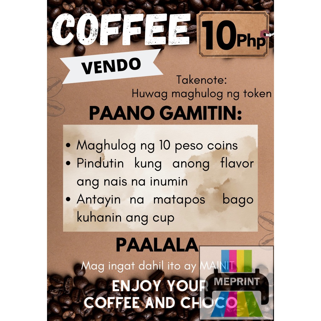 Coffee Vendo A4 Laminated Cover with Adhesive Waterproof