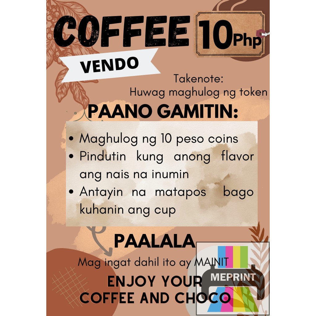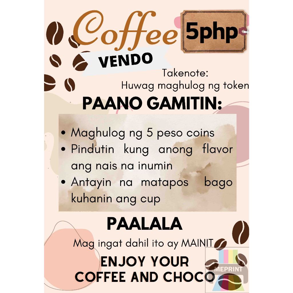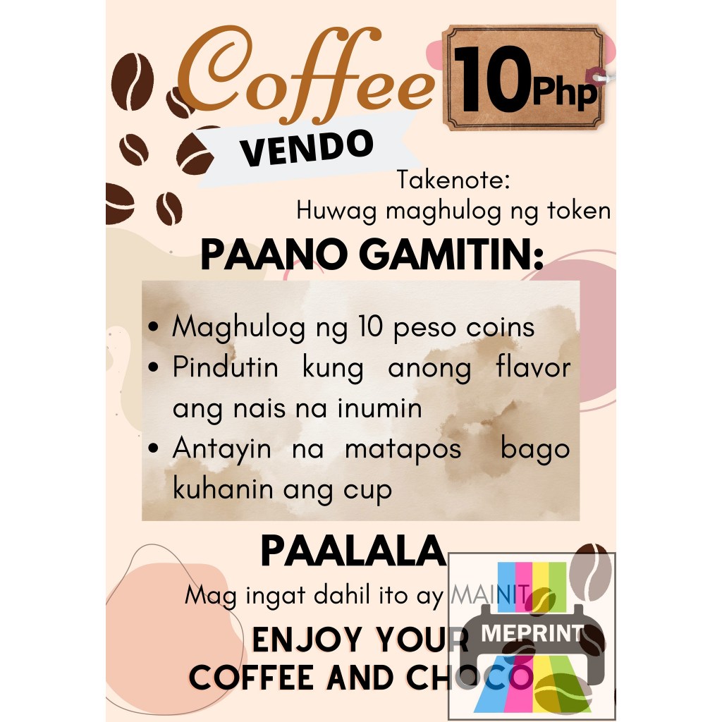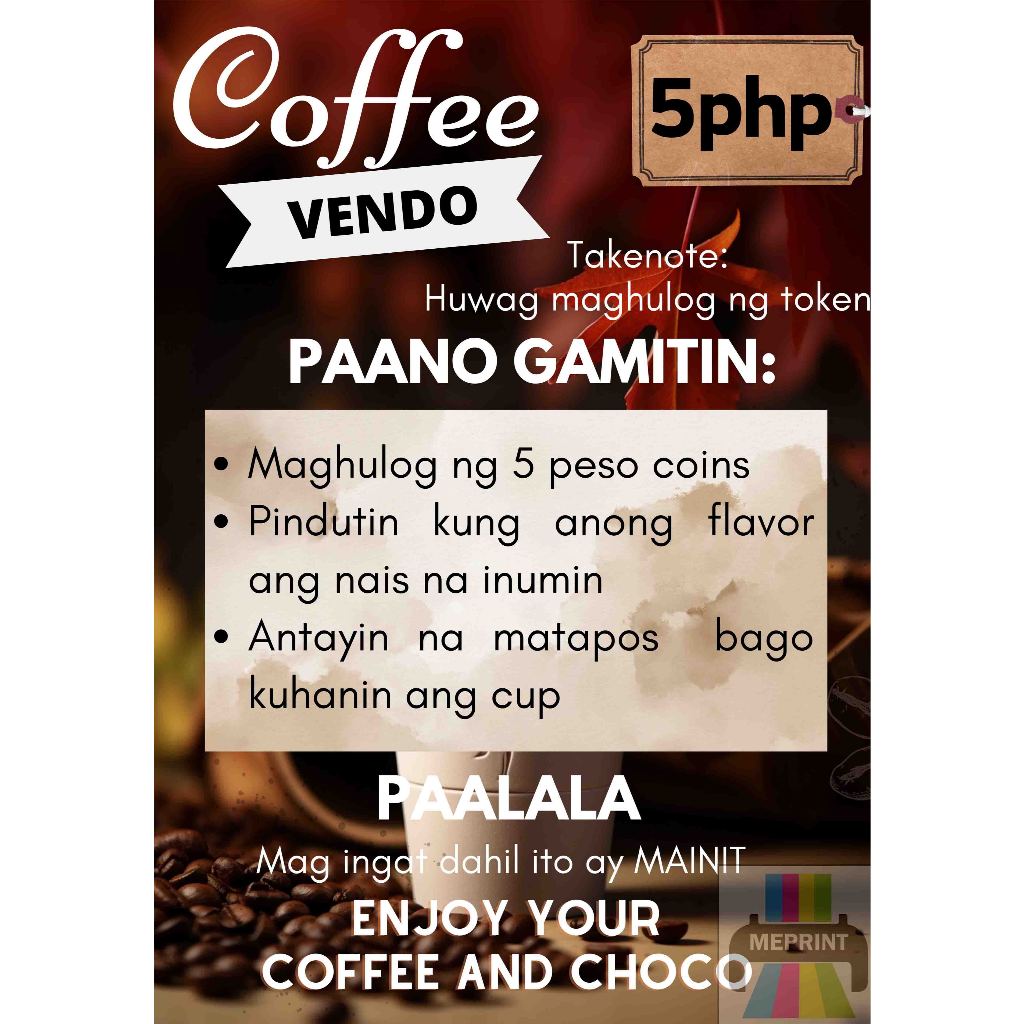 Coffee Vendo A4 Laminated Cover with Adhesive Waterproof