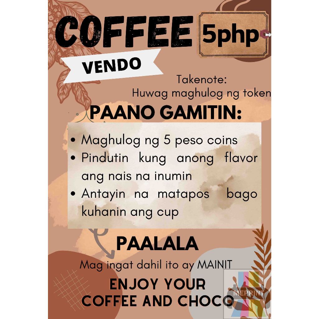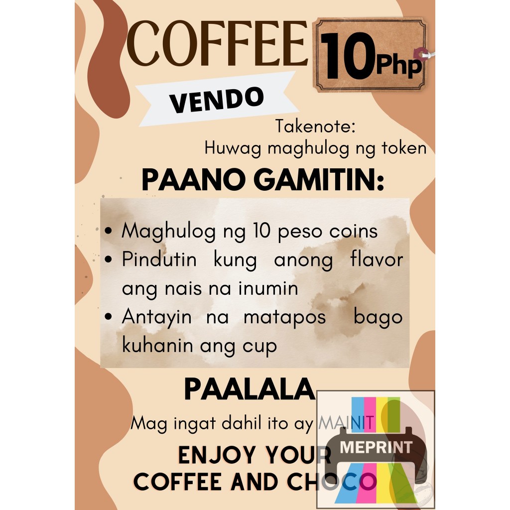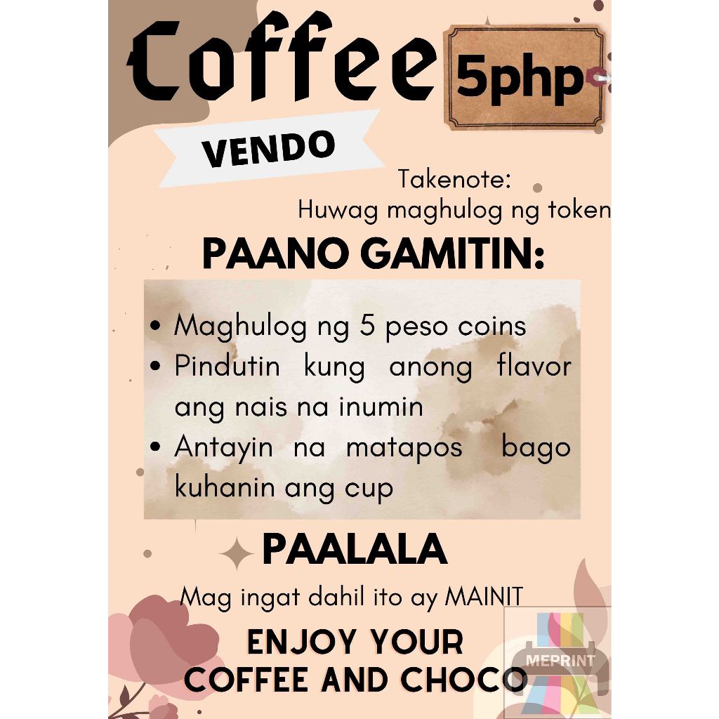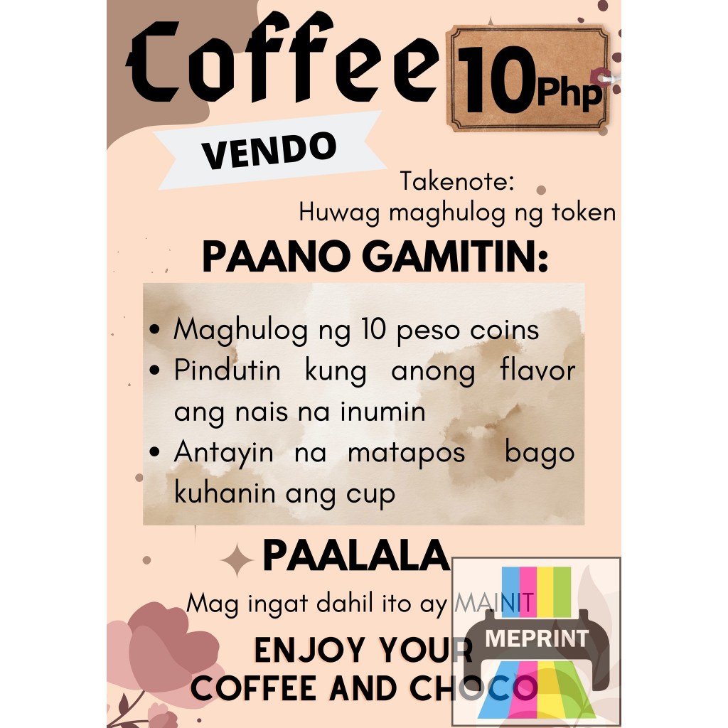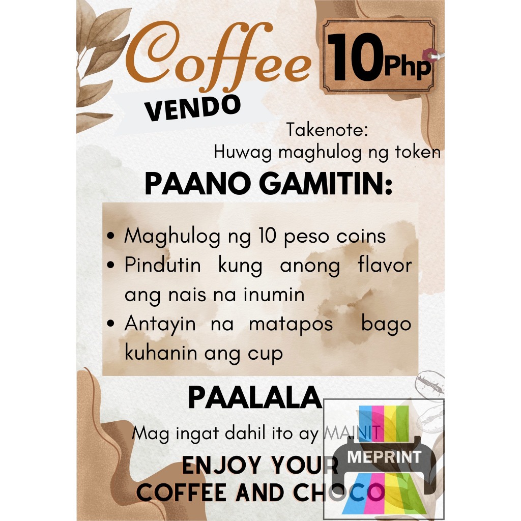 Coffee Vendo A4 Laminated Cover with Adhesive Waterproof