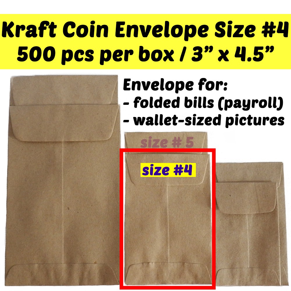Coin Envelope 500 pcs Size No. 4 Kraft Brown 3 in. x 4.5 in.
