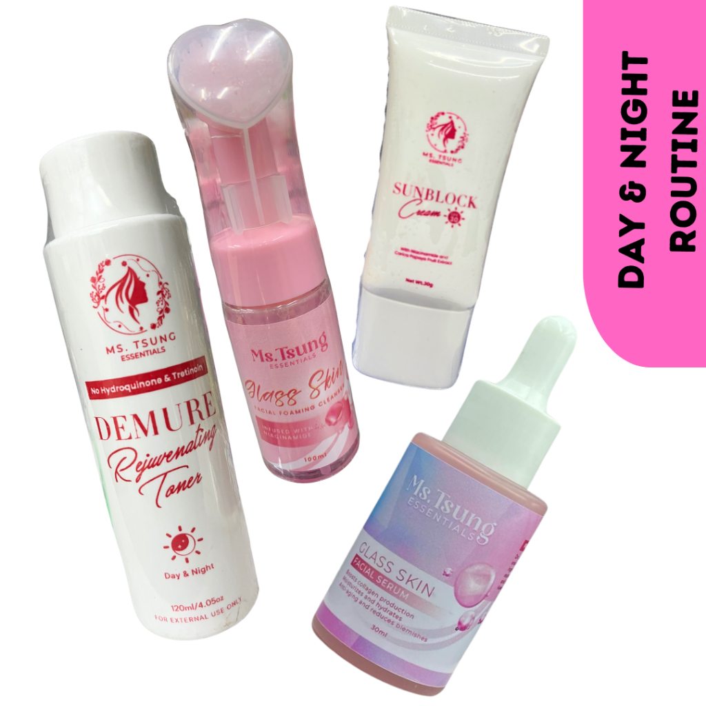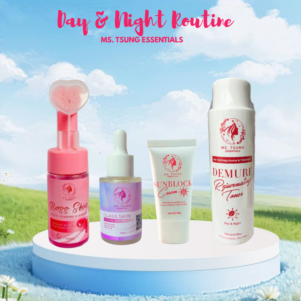 Ms. Tsung Essentials Day & Night Skin Care Routine Glass Skin Foam Wash | Serum | toner | Sunblock