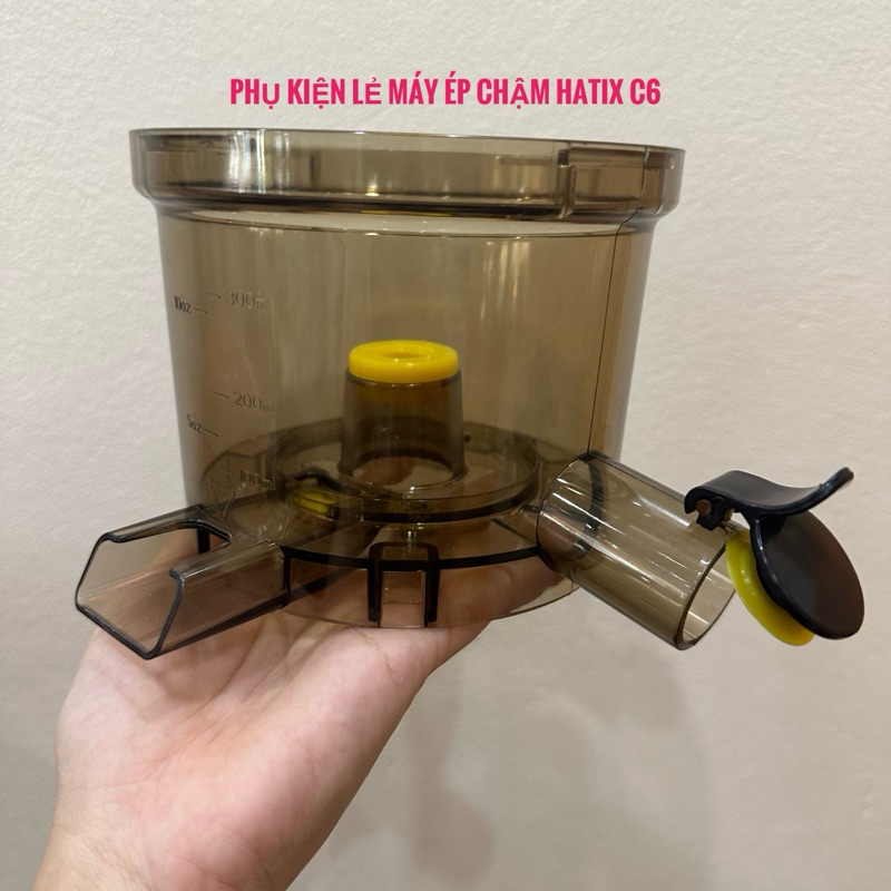 Hatix C6 slow juicer accessories: 2-spout mug, pulp filter, loading tray