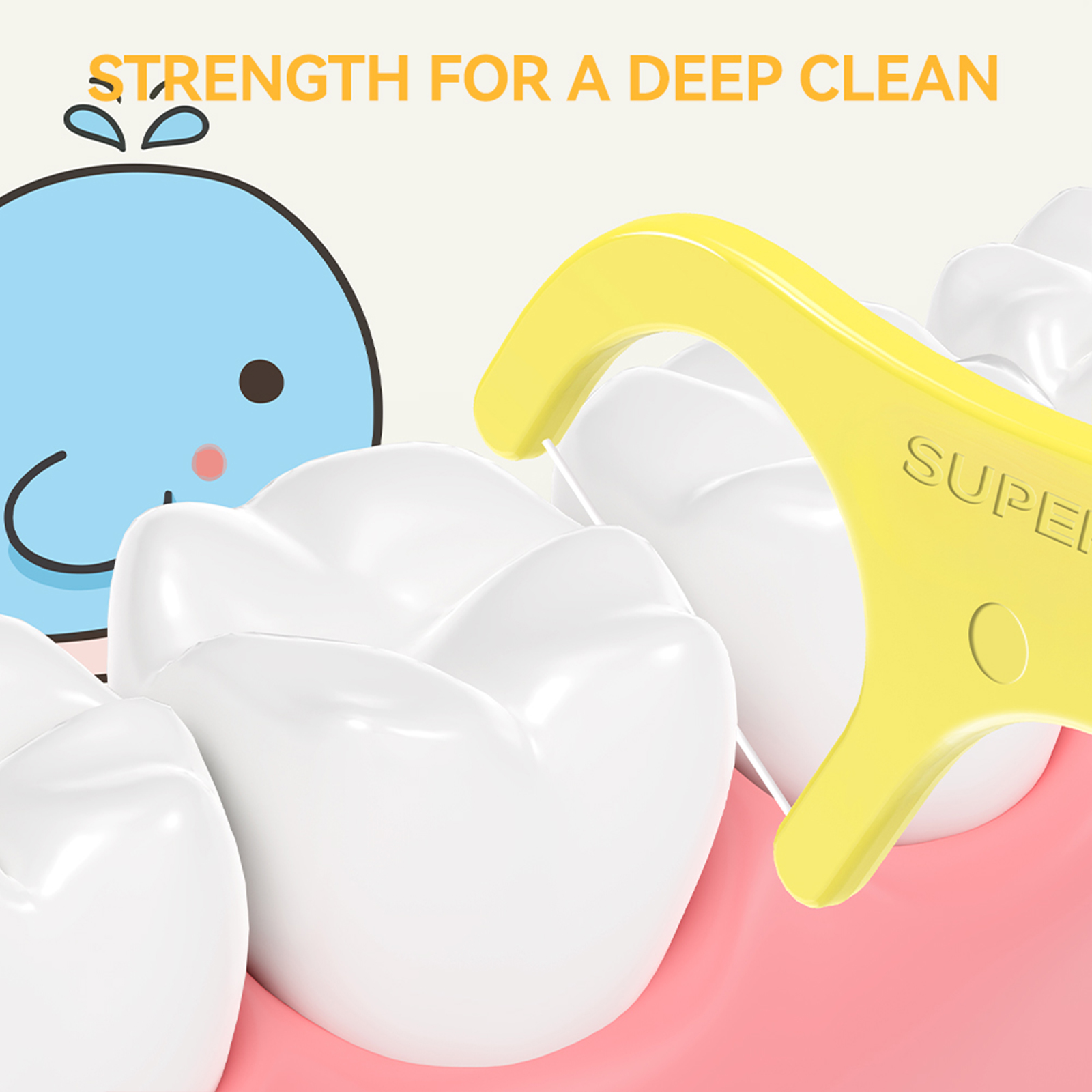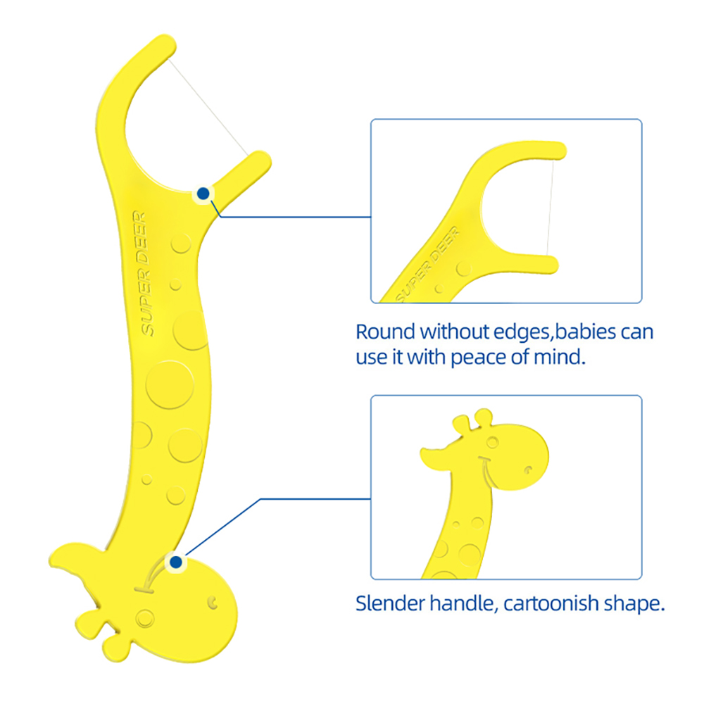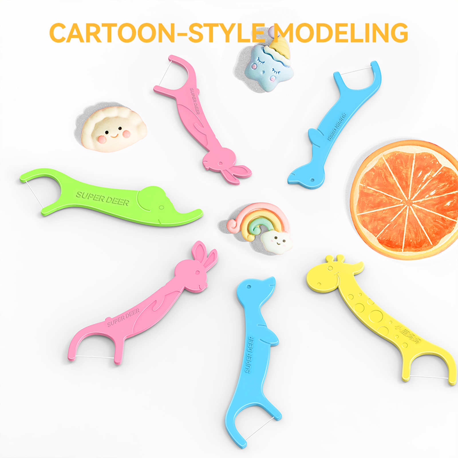 Super Deer 100PCS Cartoon Animal Dental Floss for Kids, Smooth Ultral-fine Floss Sticks, Disposable Interdental Cleaning Tool.