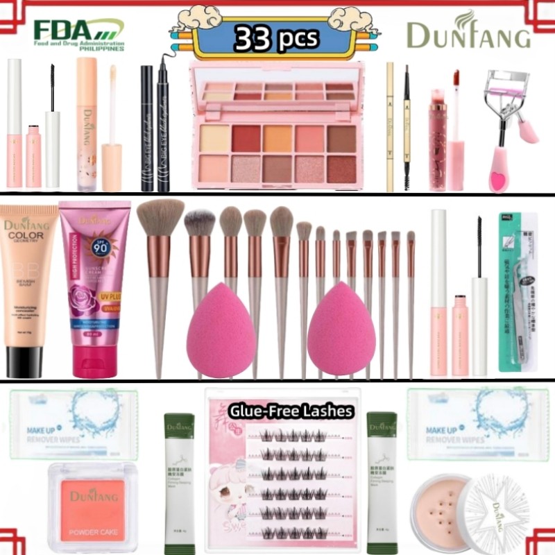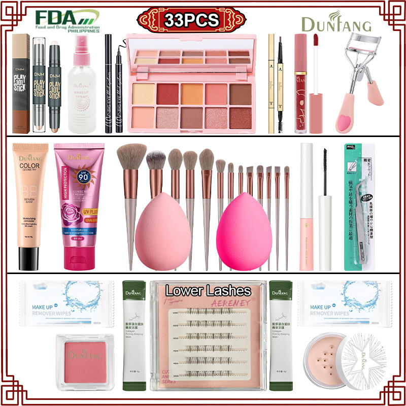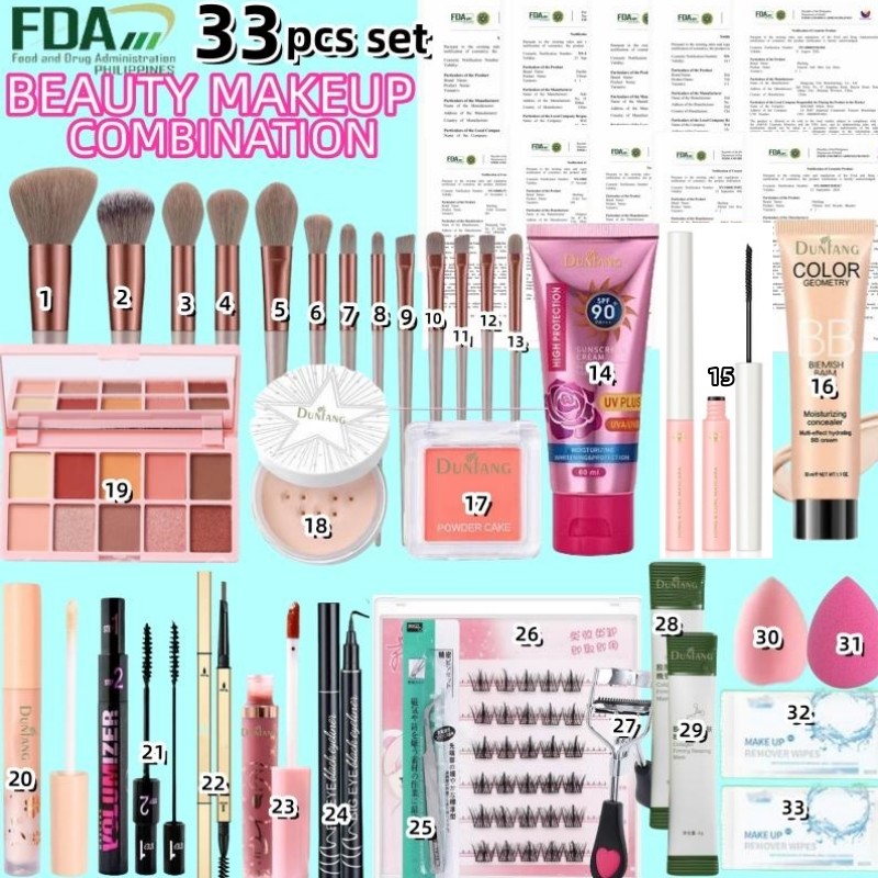 【FDA approval】33PCS Makeup Complete Set 3D Glue-Free False Eyelashes Extension Liquid Foundation