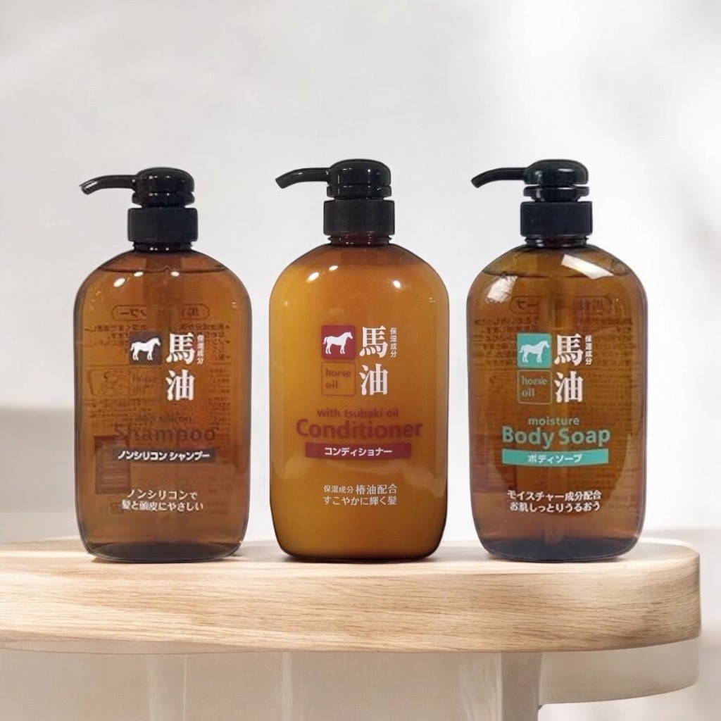 CMH Kumano Horse Oil Rinse in Shampoo Yushi Horse Oil Conditioner and Body Soap 600mL