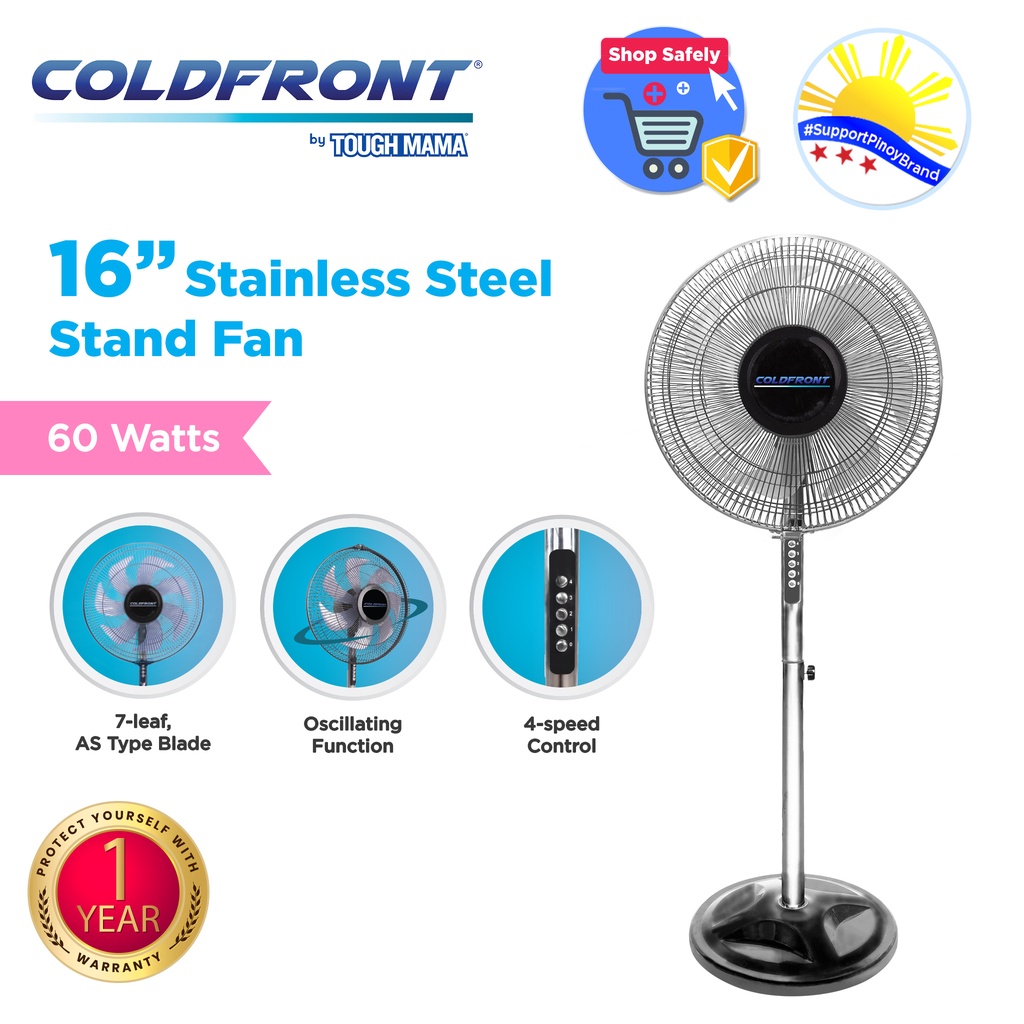 Cold Front by Tough Mama Cf16-7ss Stainless Steel Stand Electric Fan Oscillating Powerful Airflow