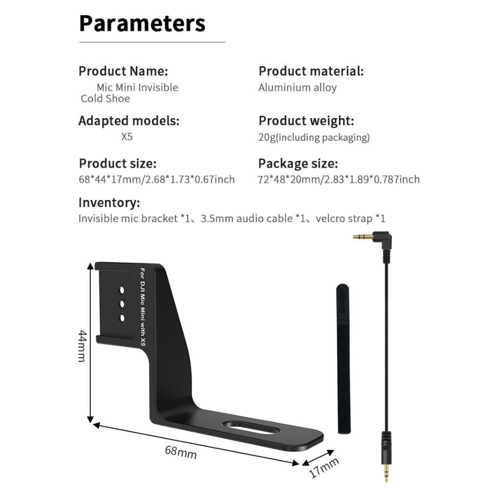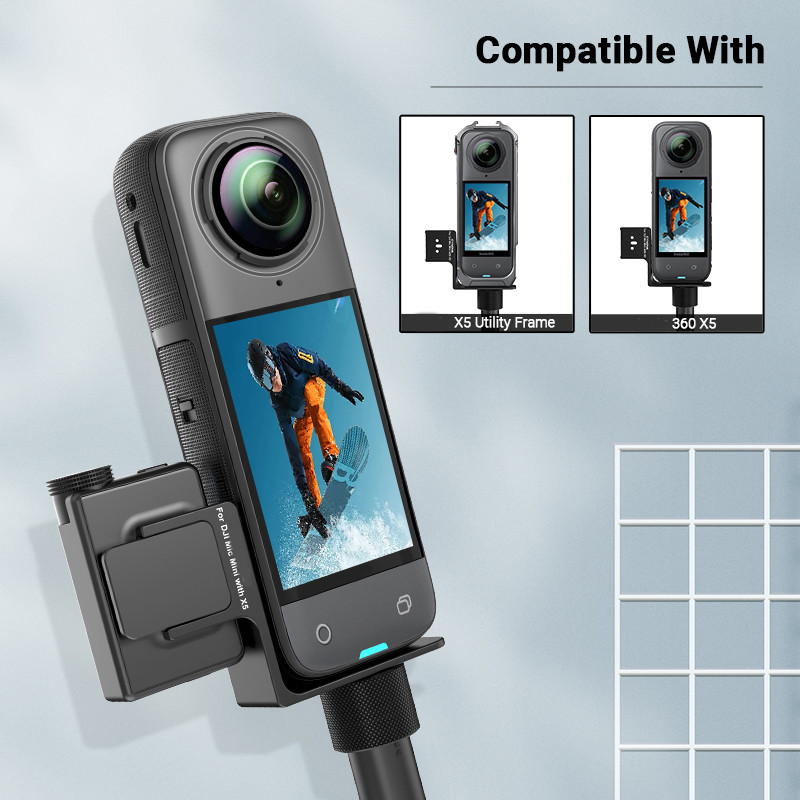 Cold Shoe for Insta360 X5 Mic Mini Accessories, Invisible Mic Bracket for Insta 360 X5 Mount Bracket External Microphone Holder with Audio Cable