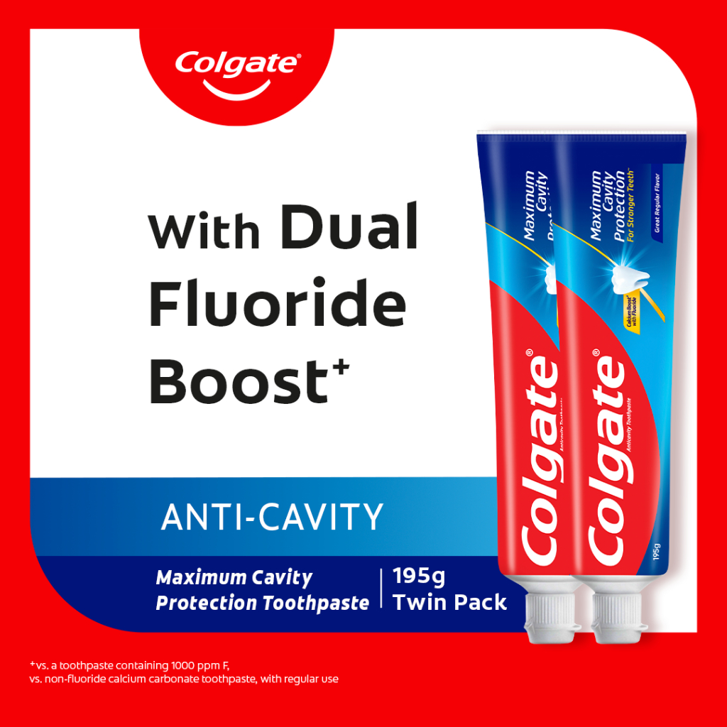 COLGATE Maximum Cavity Protection Great Regular Flavor Anti-Cavity Family Toothpaste 195g Twin Pack