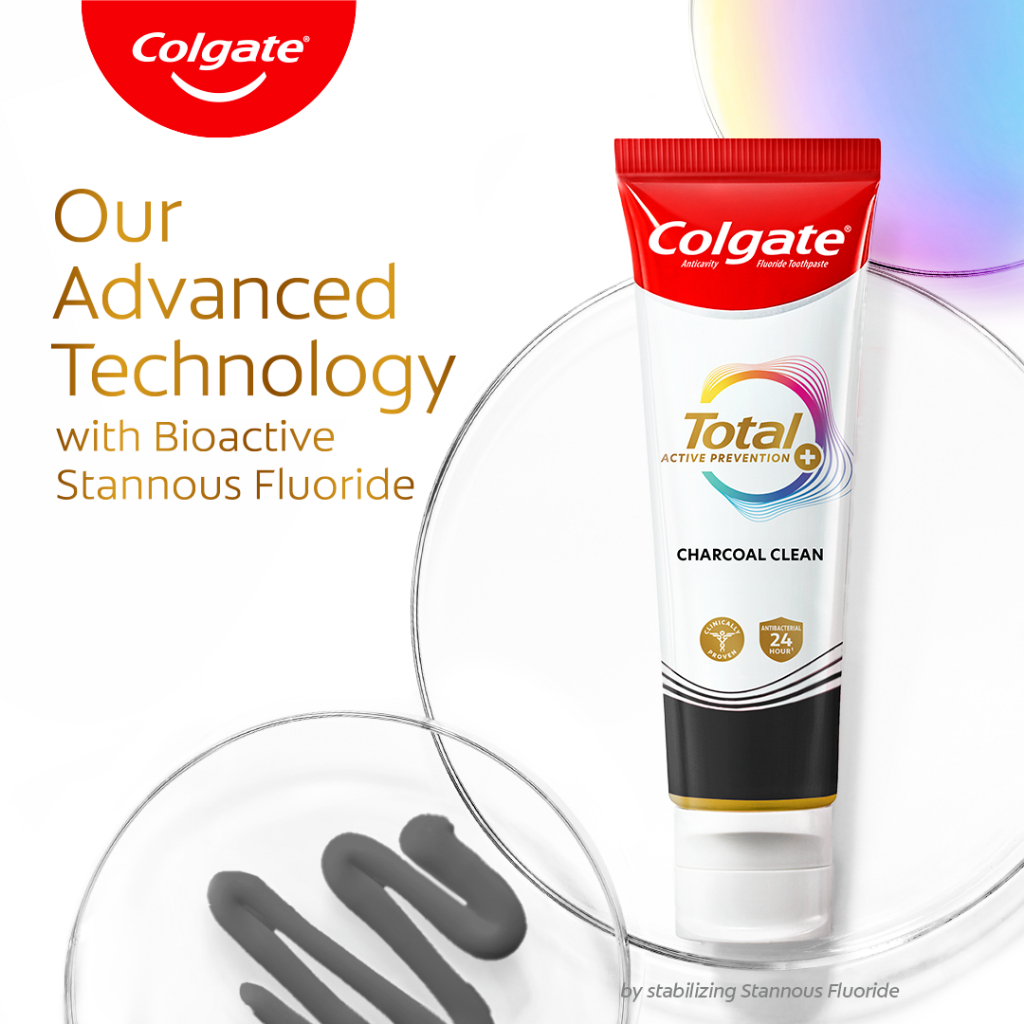 Colgate Total Charcoal Clean Antibacterial Toothpaste, Removes Surface Stains, 150g x2