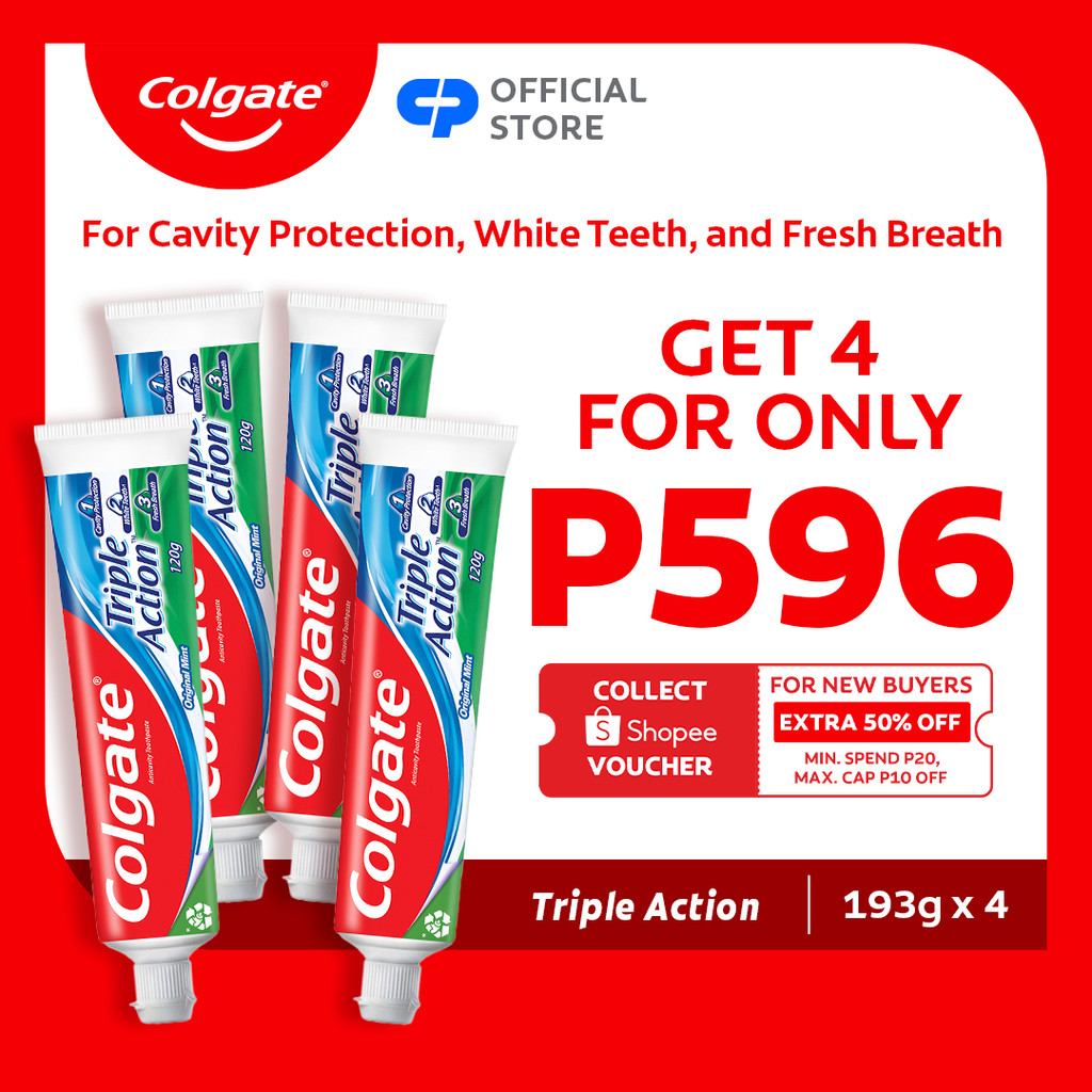 [BUY 2, FREE 2] Colgate Triple Action Anti-Cavity Family Toothpaste 193g Value Pack of 4
