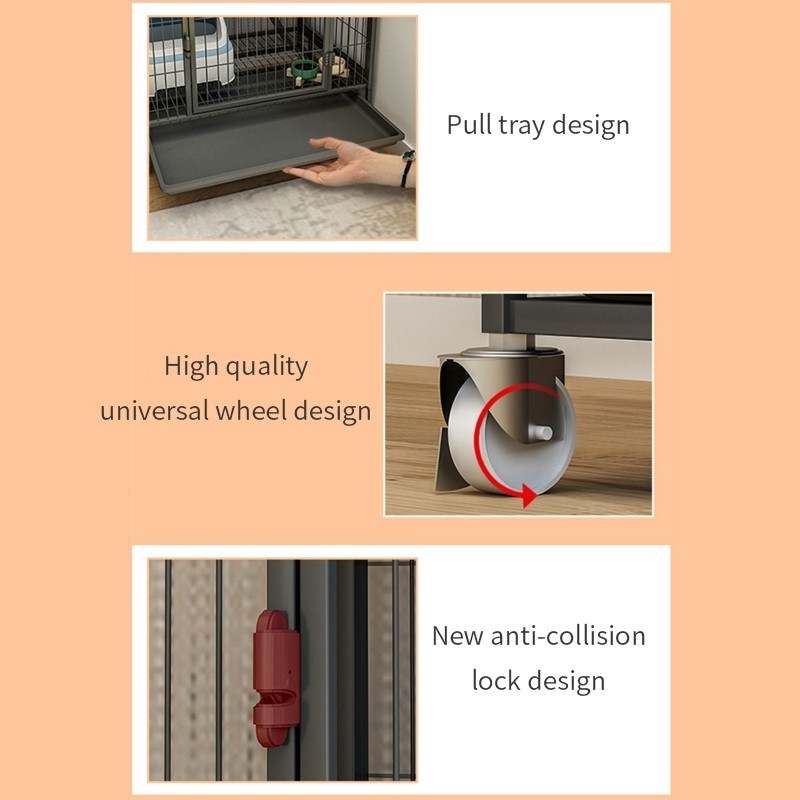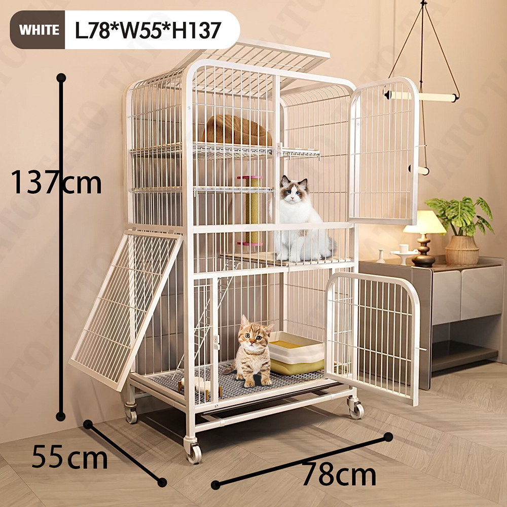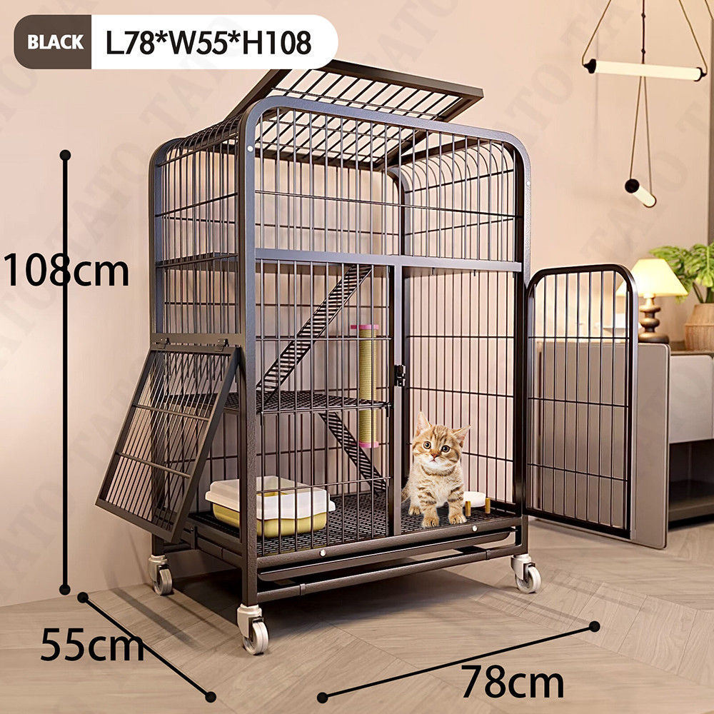 Collapsible Cat Cage 2/3/4 Layer Square Tube Stainless Steel With Wheel Large Pet Cage House