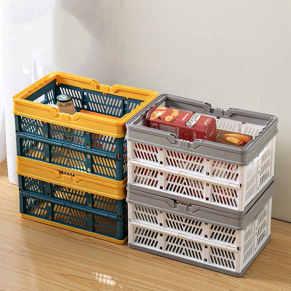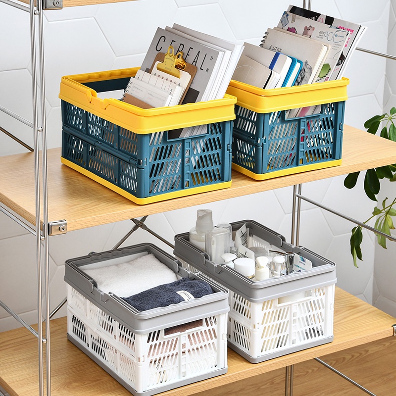 Collapsible Crate Plastic Folding Storage Box Basket Utility Desktop Containers