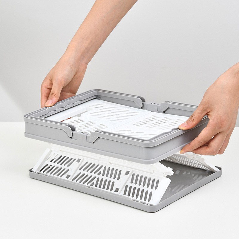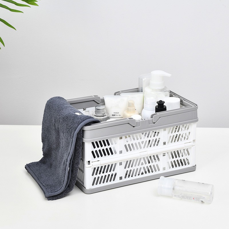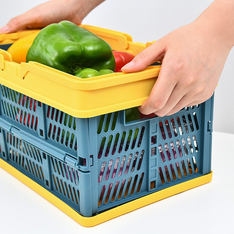 Collapsible Plastic Folding Crate Storage Box Basket Utility Desktop Containers