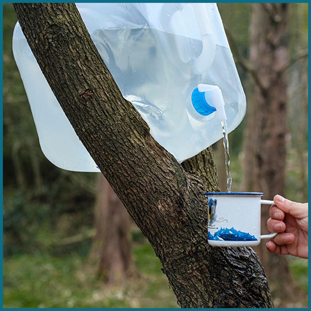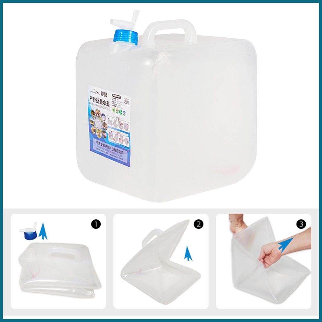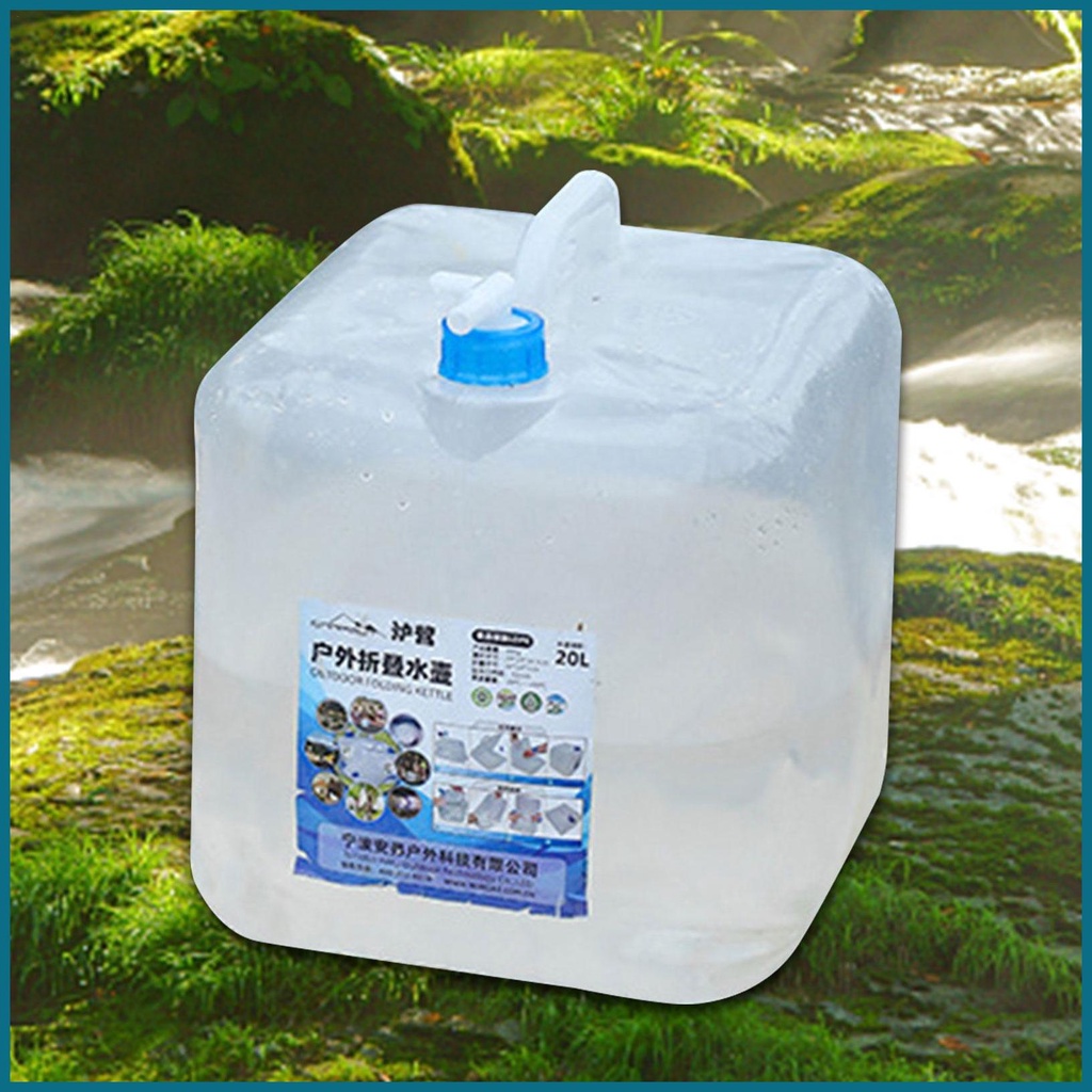 Collapsible Water Storage Cube 20L Foldable Water Container Bag Foldable Water Bag with Faucet & Handle Clear Water luph