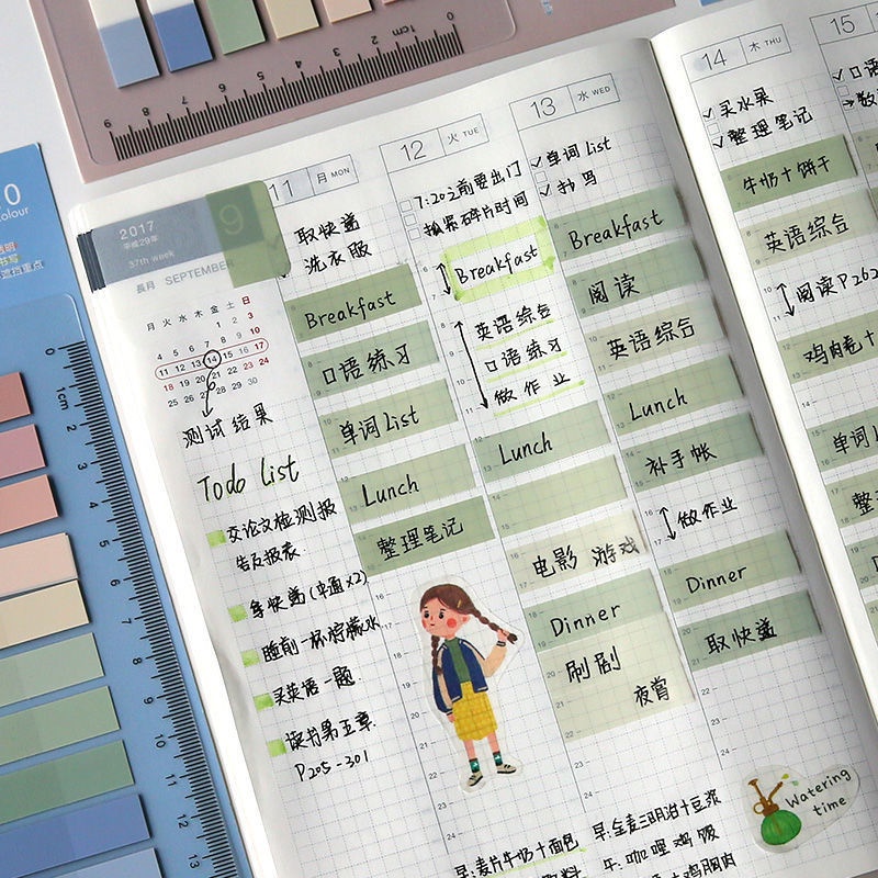 Color-Coded Cute Stickers With Sticky Notes Can Write With Ruler Waterproof Sticky Notes
