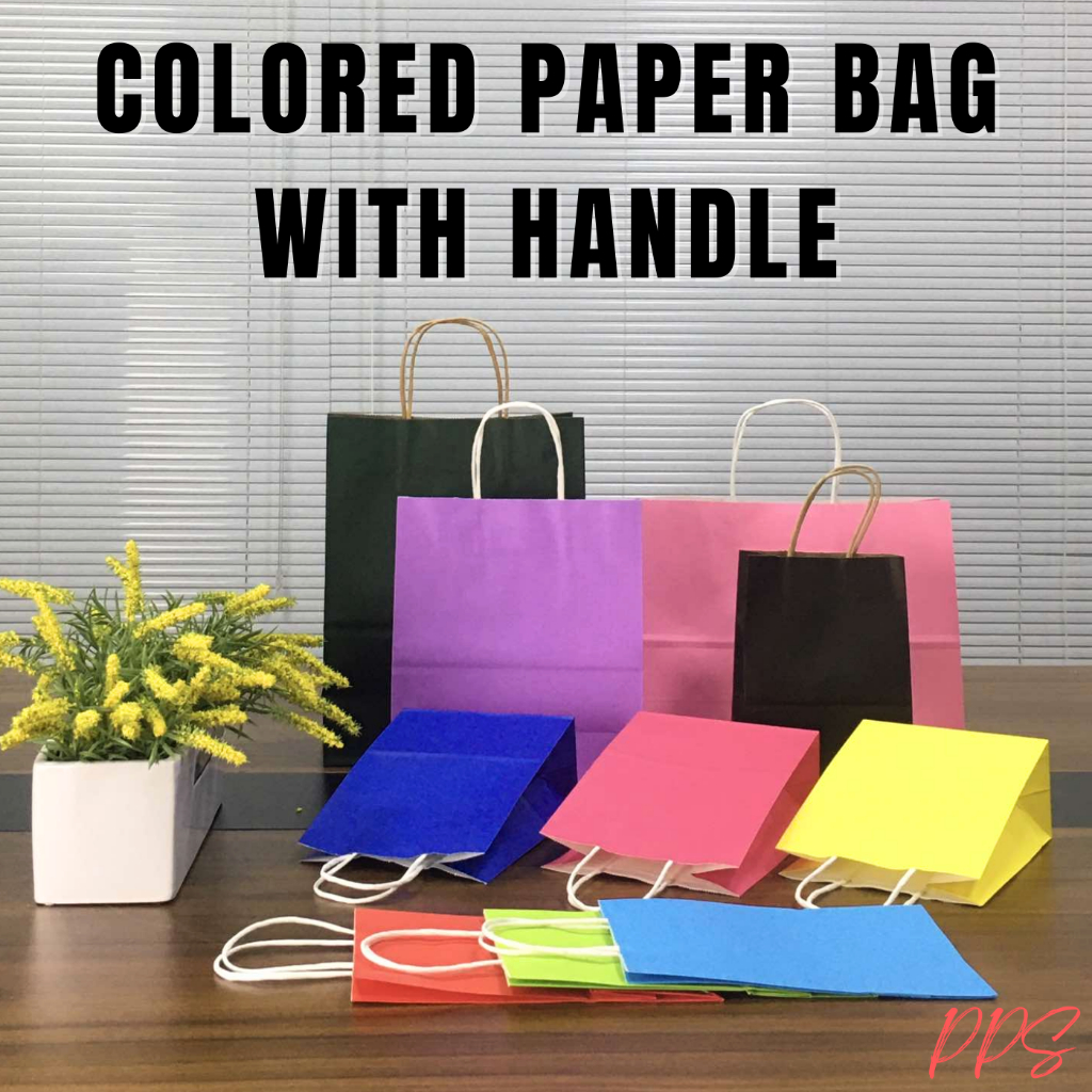 Color Paper Bag Plain Handle Bag Gift Bag Hand Bag Paper Bag Per Piece