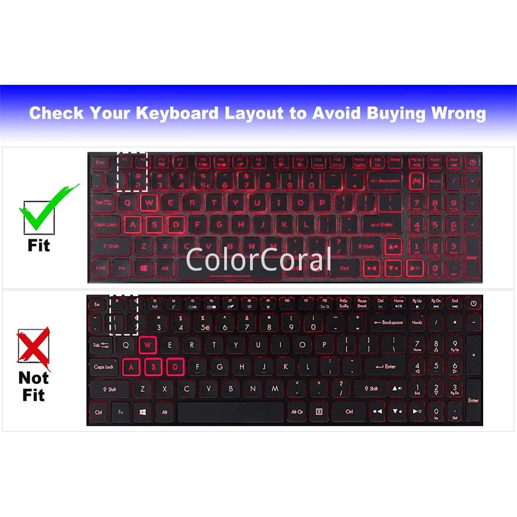 ColorCoral Keyboard Cover for Acer Predator Helios 300 PH315-52/53 PH317-53/54 15.6 17.3 & Acer Nitro 5 AN515-45/43/44 AN515-54/55 AN517-54/53/51/52 NP515-51 Nitro 7 AN715-51/52 US