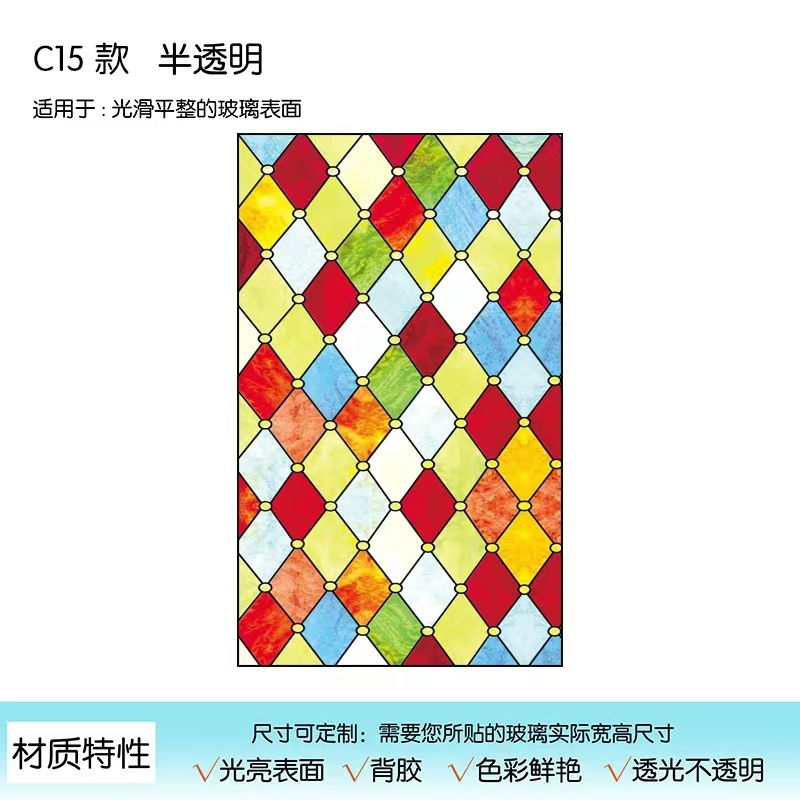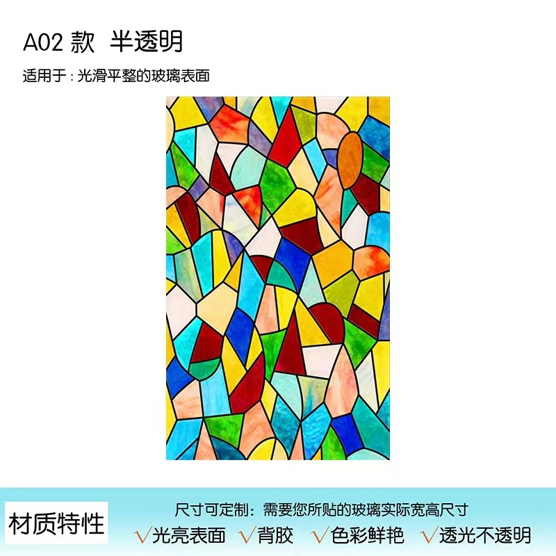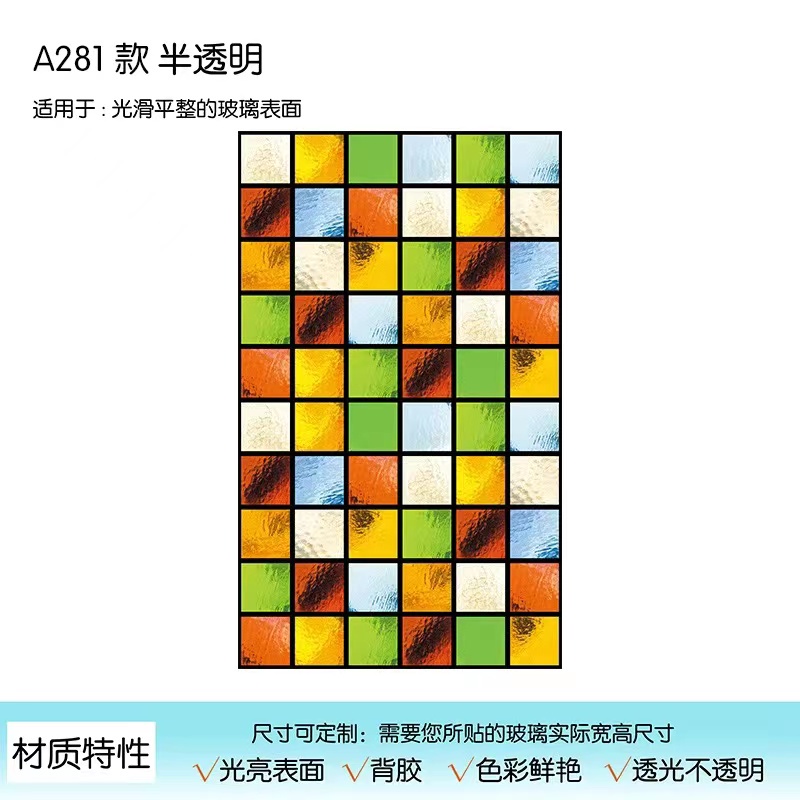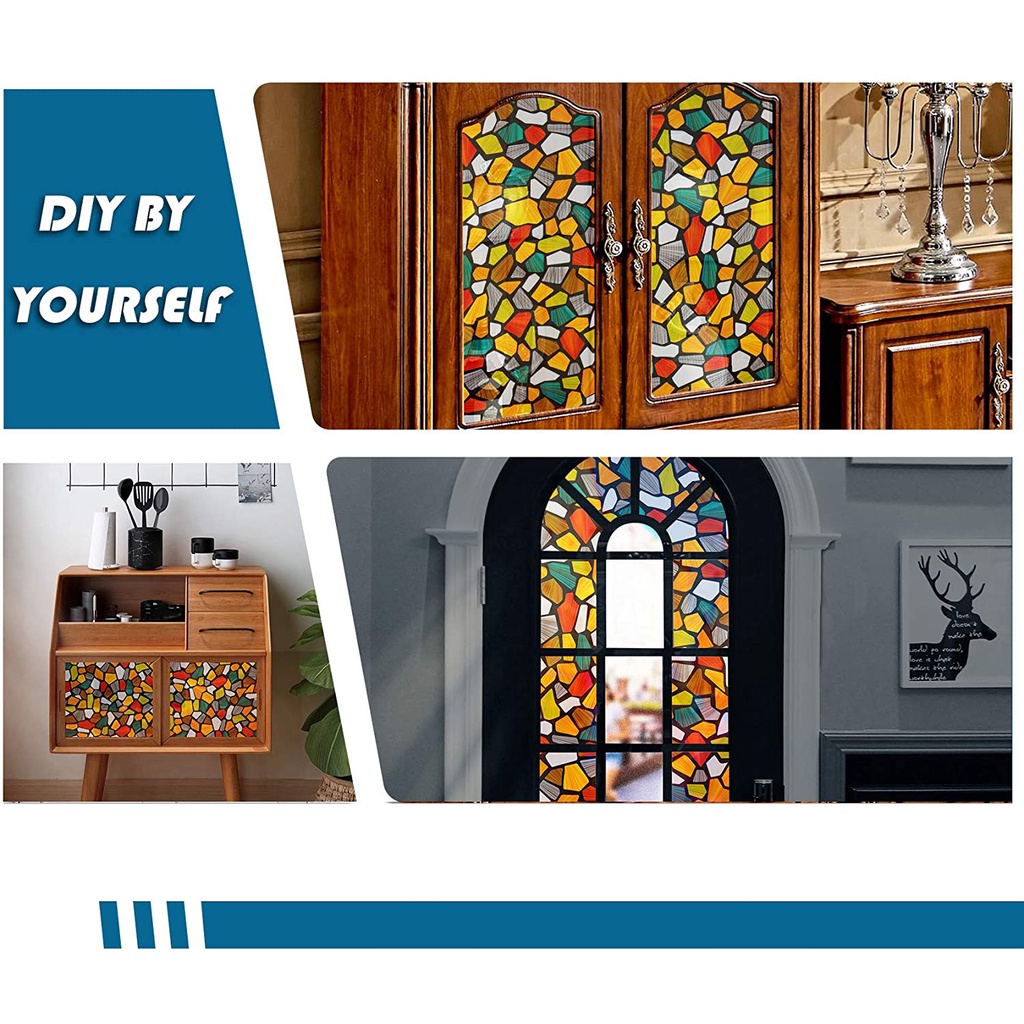 Colored Window Film Privacy Stained Glass Cover Static Cling Decorative Self Adhesive Removable Anti UV Window Sticker