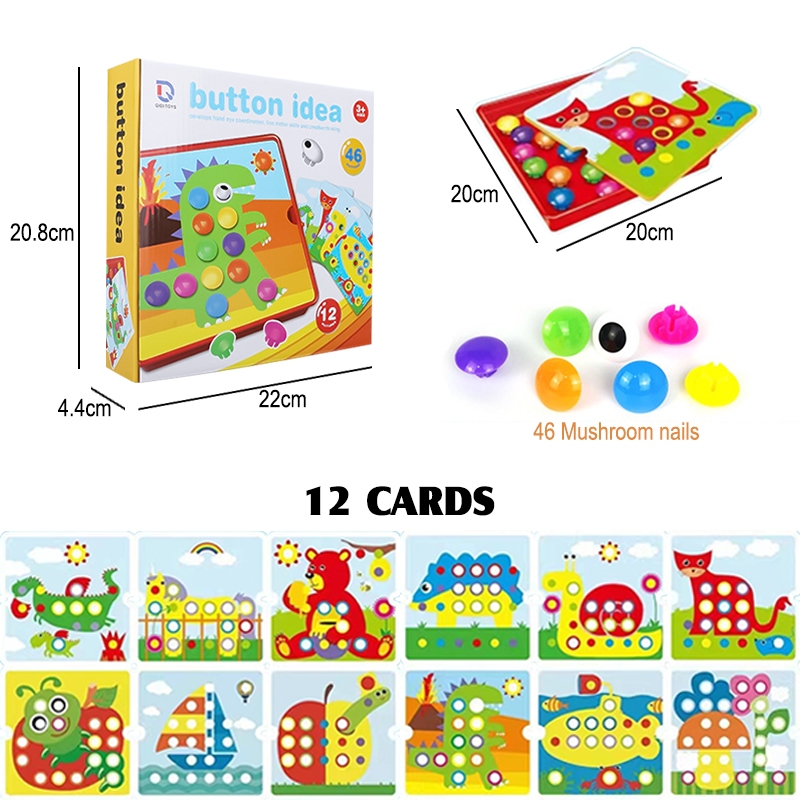 Colorful Button Idea Toy Learn and Play Educational Learning Tool Button Nail Mushroom 3D Puzzles