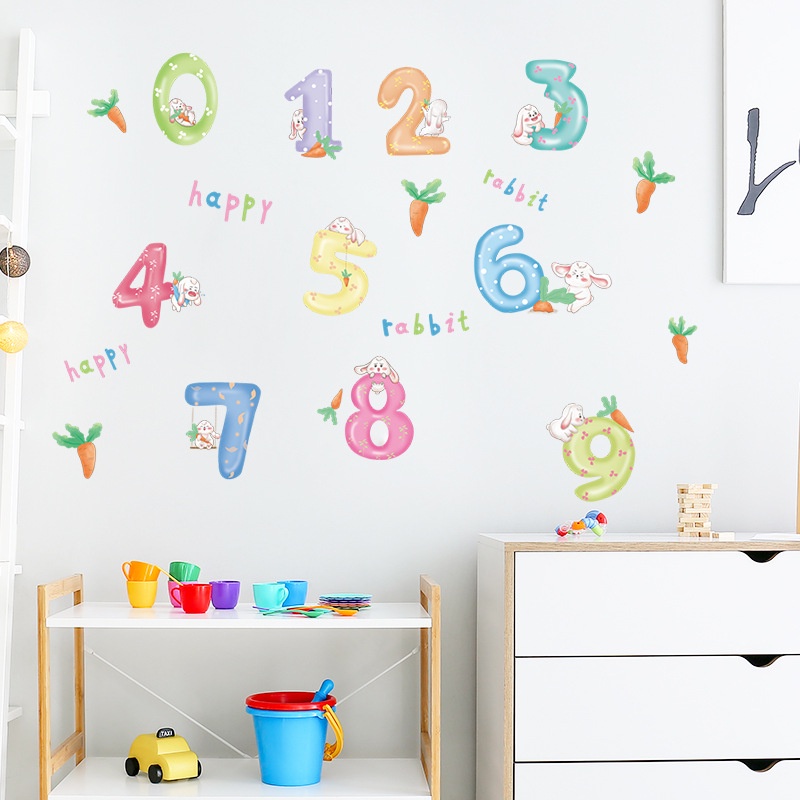 Colorful Cartoon Animal Numbers Wall Stickers for Nursery and Kids' Bedroom Wall Decal Self-adhensive
