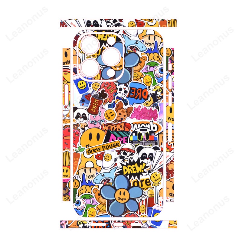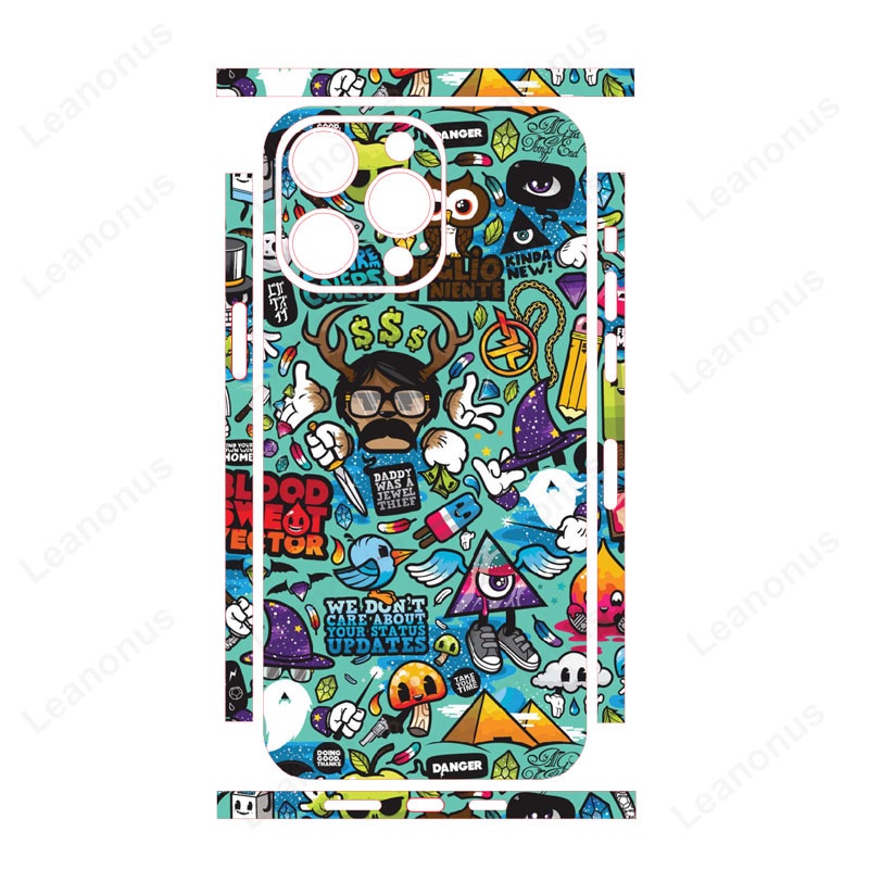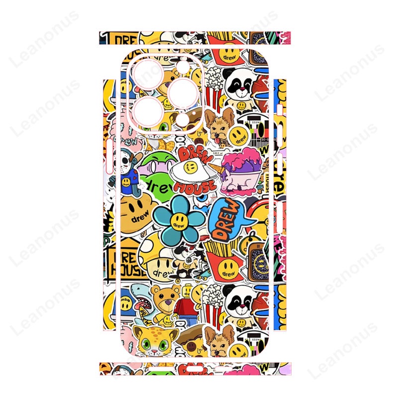 Colorful Decal Skin Compatible for iPhone 14 13 12 Pro Max Cartoon Style Back Wrap with Side Skin 3M Border Cover Matte Sticker