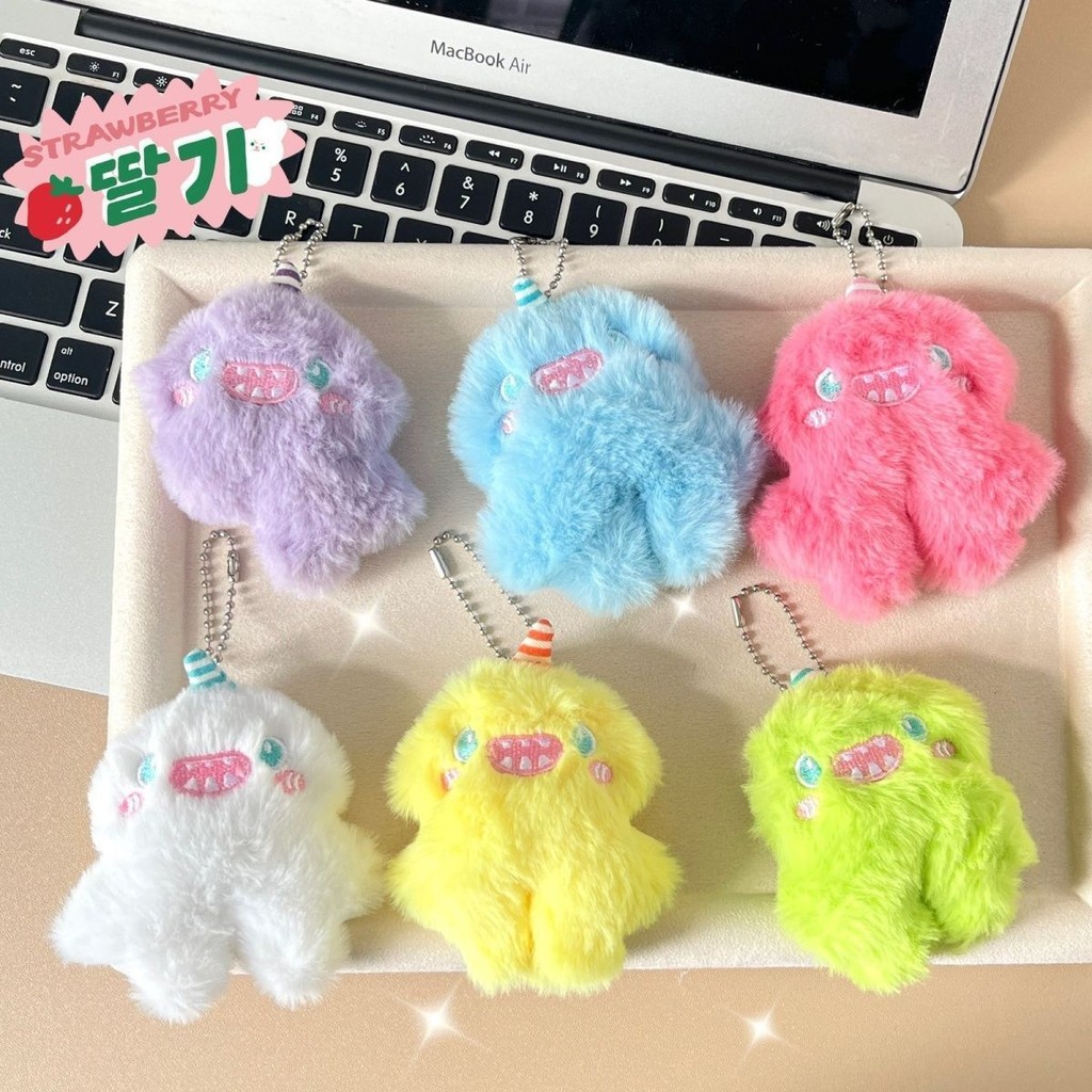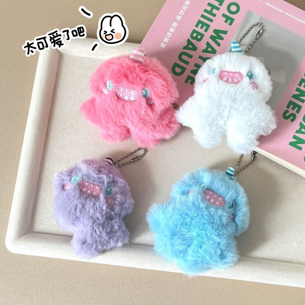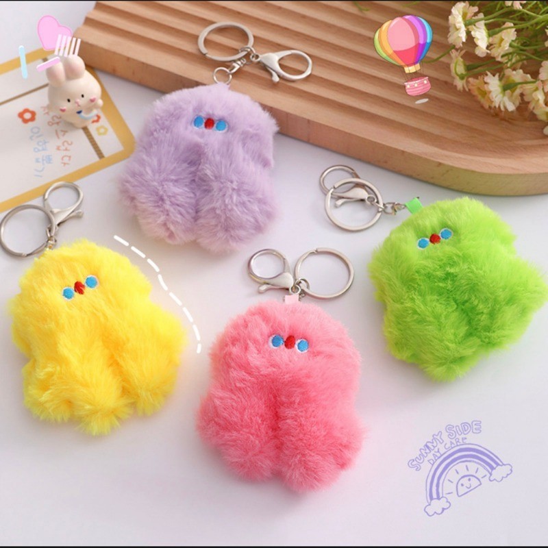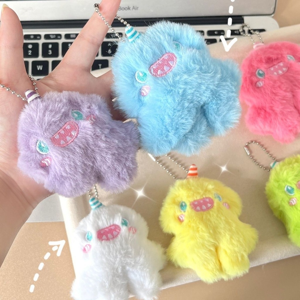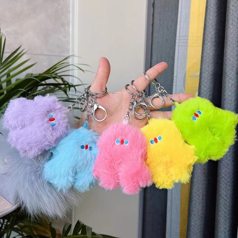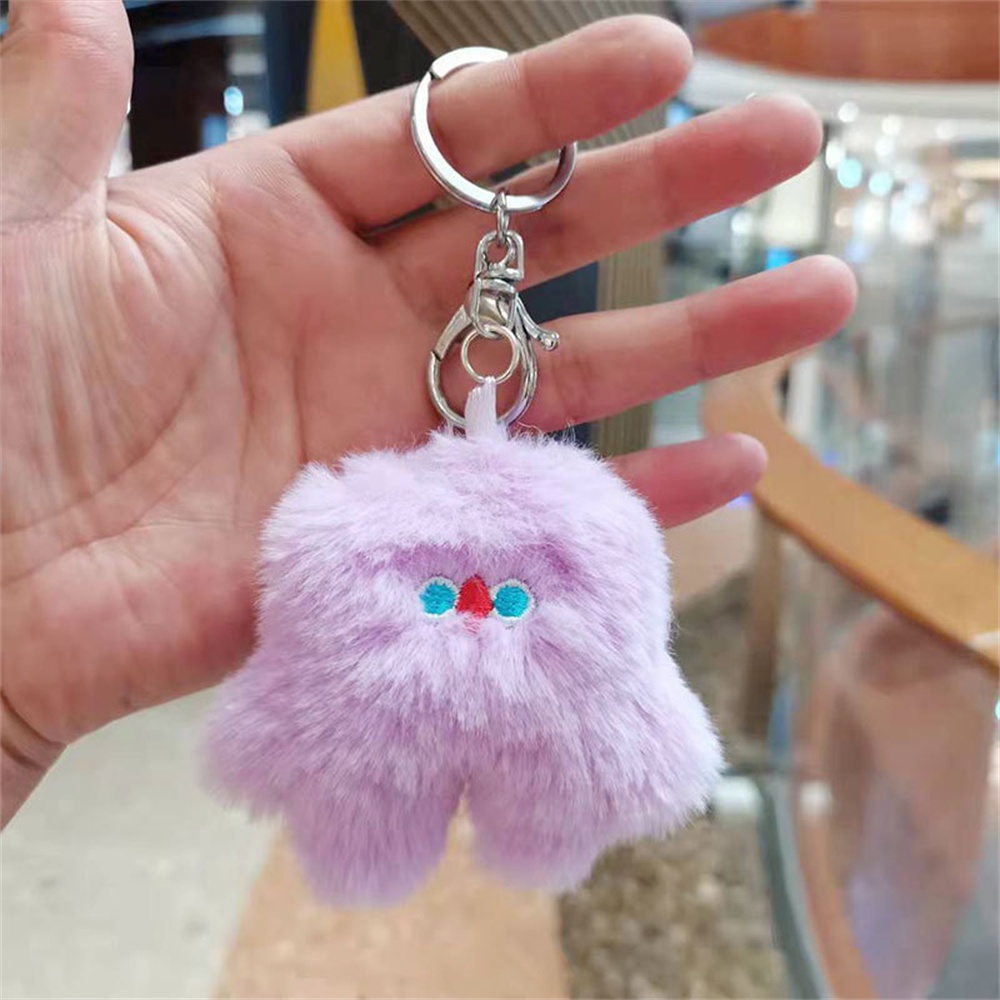 Colorful Plush Doll Key Ring Cute Cartoon Hairy Big Eyes Toys Key Chain For Girl Backpack DIY Ornaments