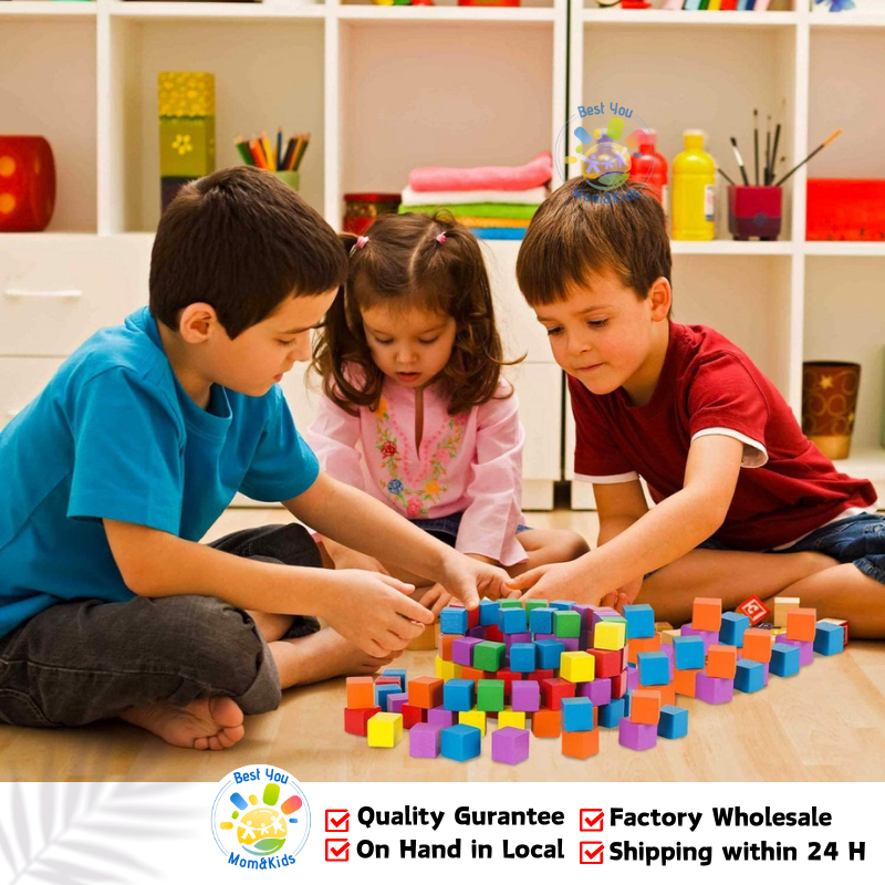Colorful Square Wooden Cube Blocks 2cm/3cm Cube Building Block Toys Montessori Early Educational Math Art Toys for Kids