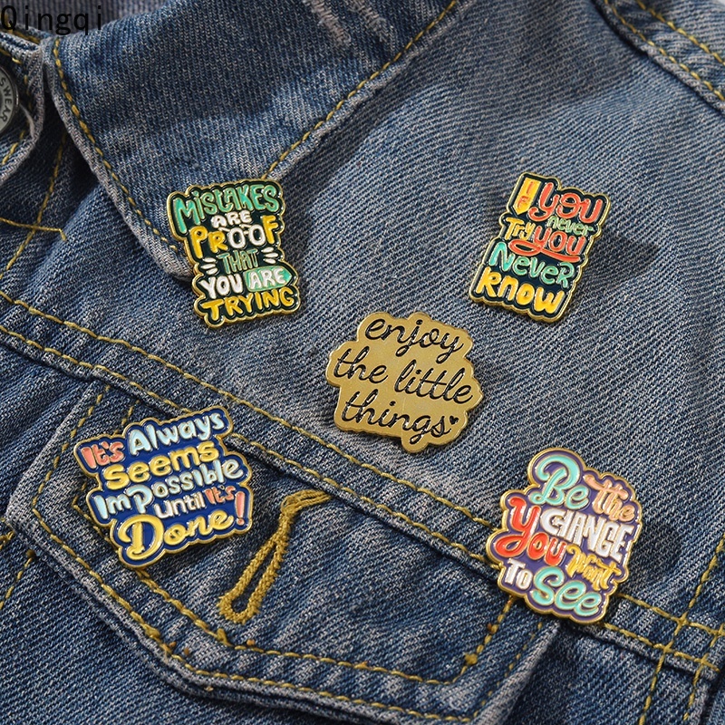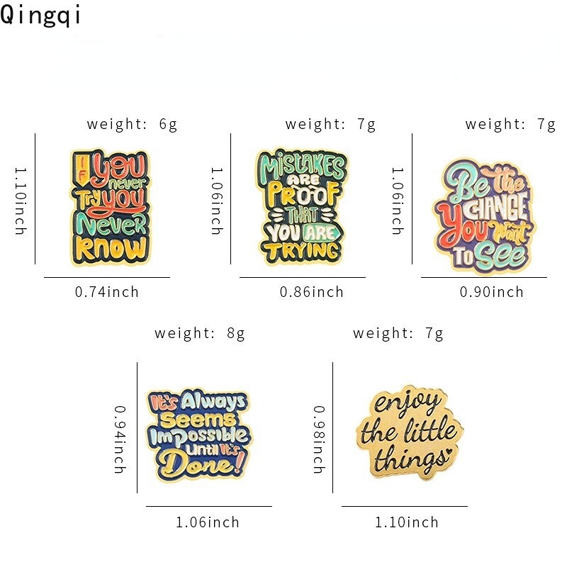Colourful Inspirational Quote Enamel Pins You Never Try You Never Know Brooch Badges Cartoon Quotes Jewelry Gift for Kids