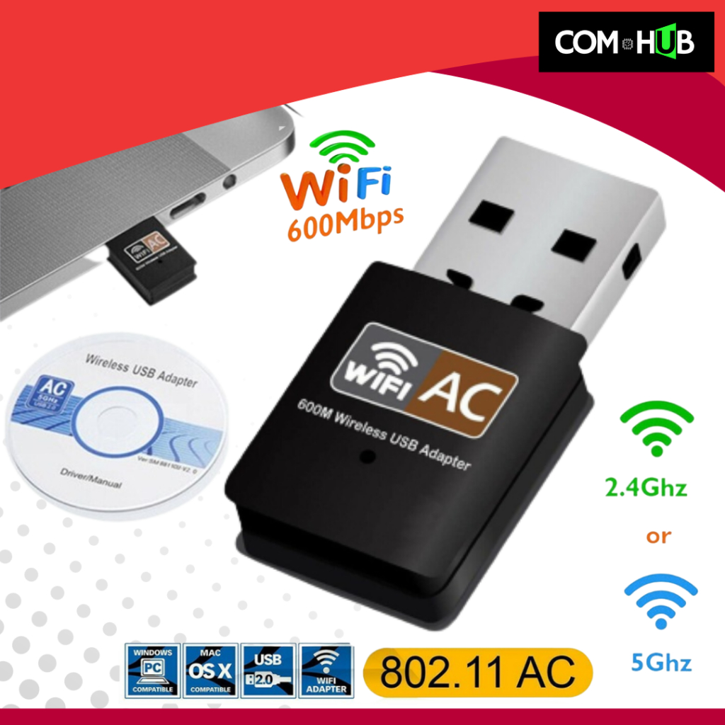 Com Hub PC | 600Mbps Wireless USB Adapter Wifi Dual Band 2.4G / 5G Hz Dongle Receiver Network PC