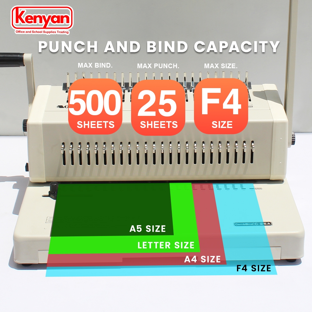 Comb Binding Machine C25A [F4/Long/Legal] 25sheets Punched Heavy Duty 24 Hole Punch OFFICOM