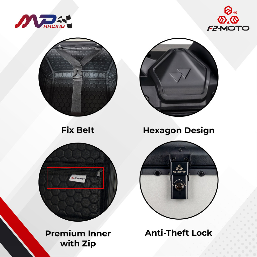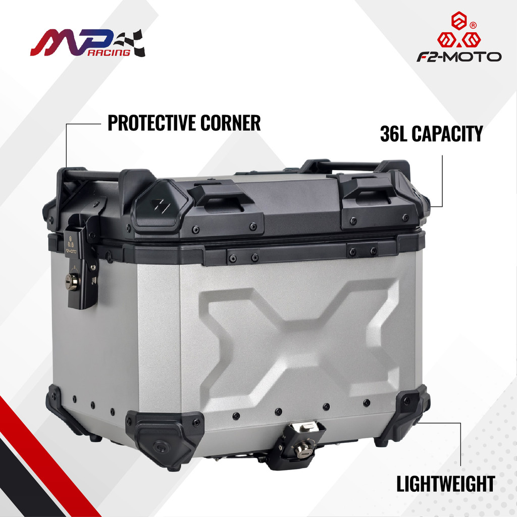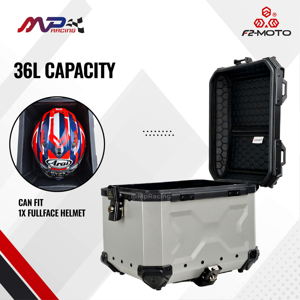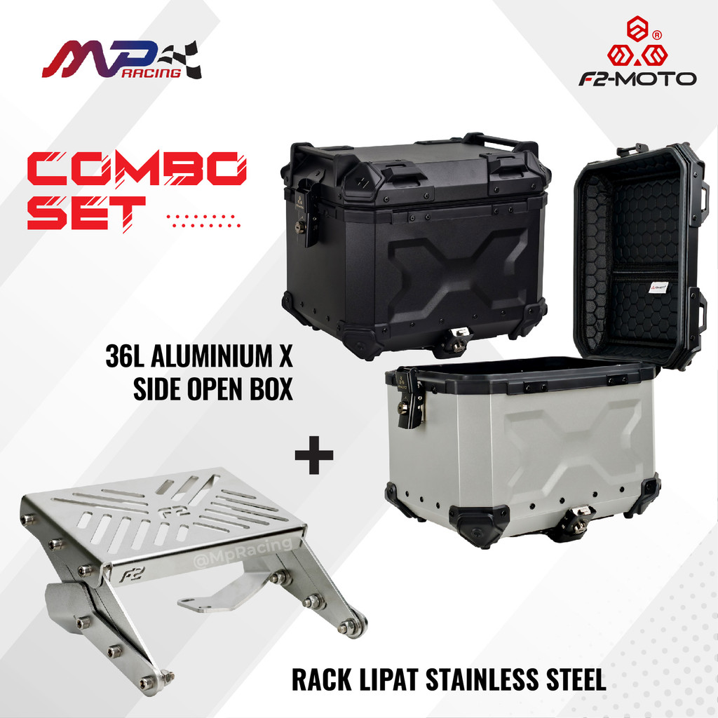 Combo F2-MOTO Top Box 36L Aluminium X Side Open Box + F2 Rack Lipat StainlessSteel Y15/Y16/LC135/RSX/RS150/NMAXV2/LCV2-7