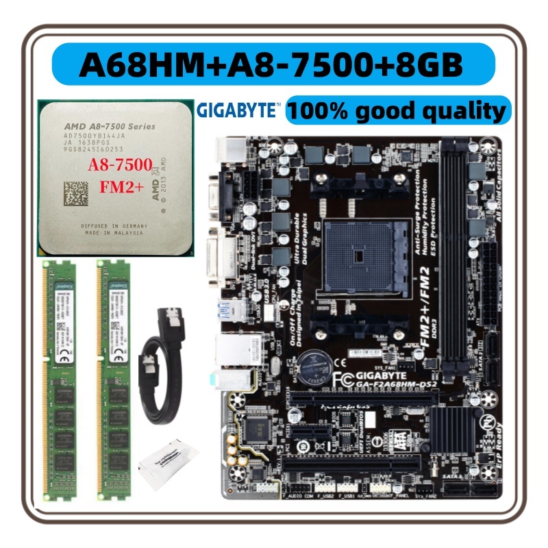 Combo Package Gigabyte FM2 A68HM-K/E/ DDR3 8GB 16G A8-7500 A8-7680 A8-7650 A8-8650 CPU Desktop with Integrated AMD Motherboard CPU Combo Kit Desktop