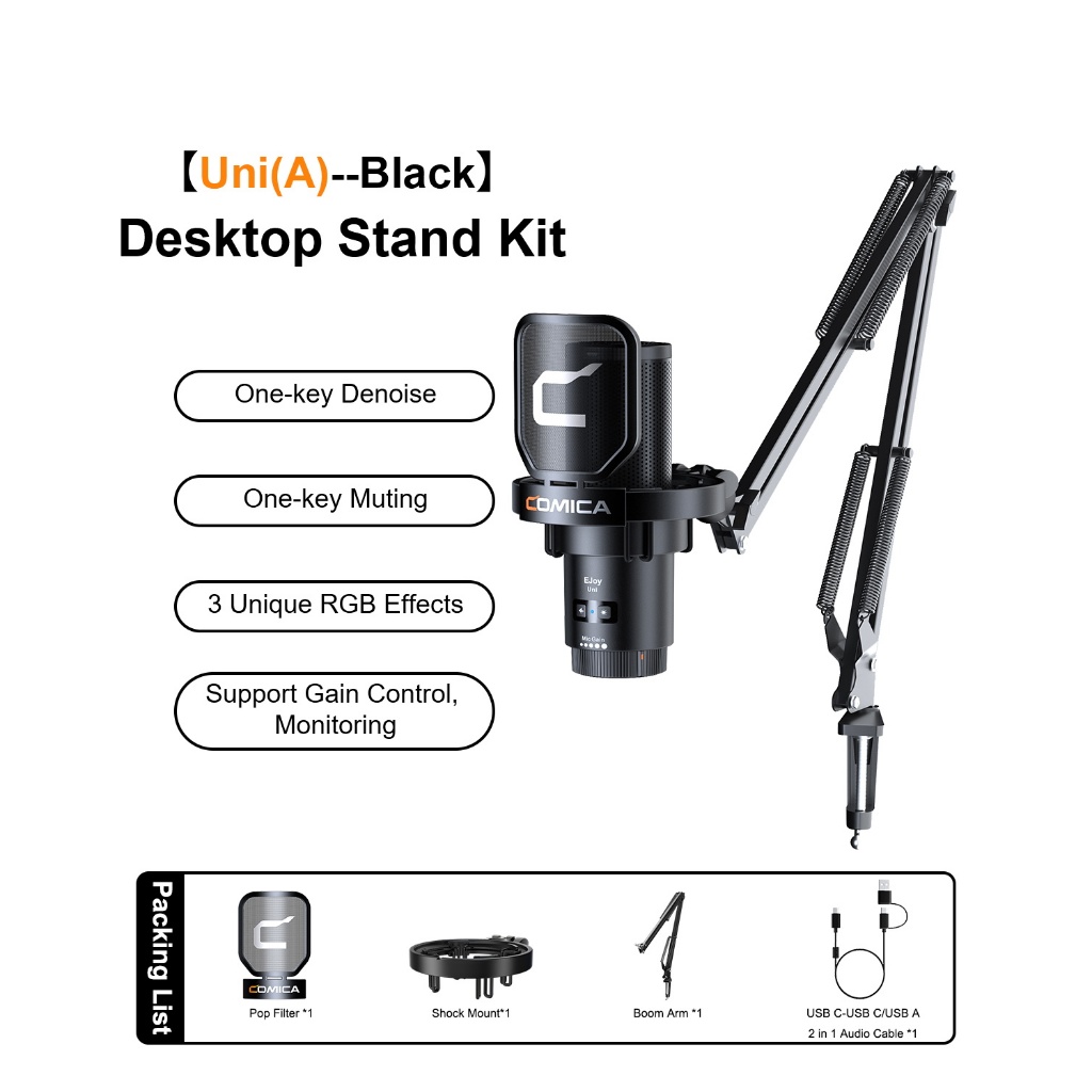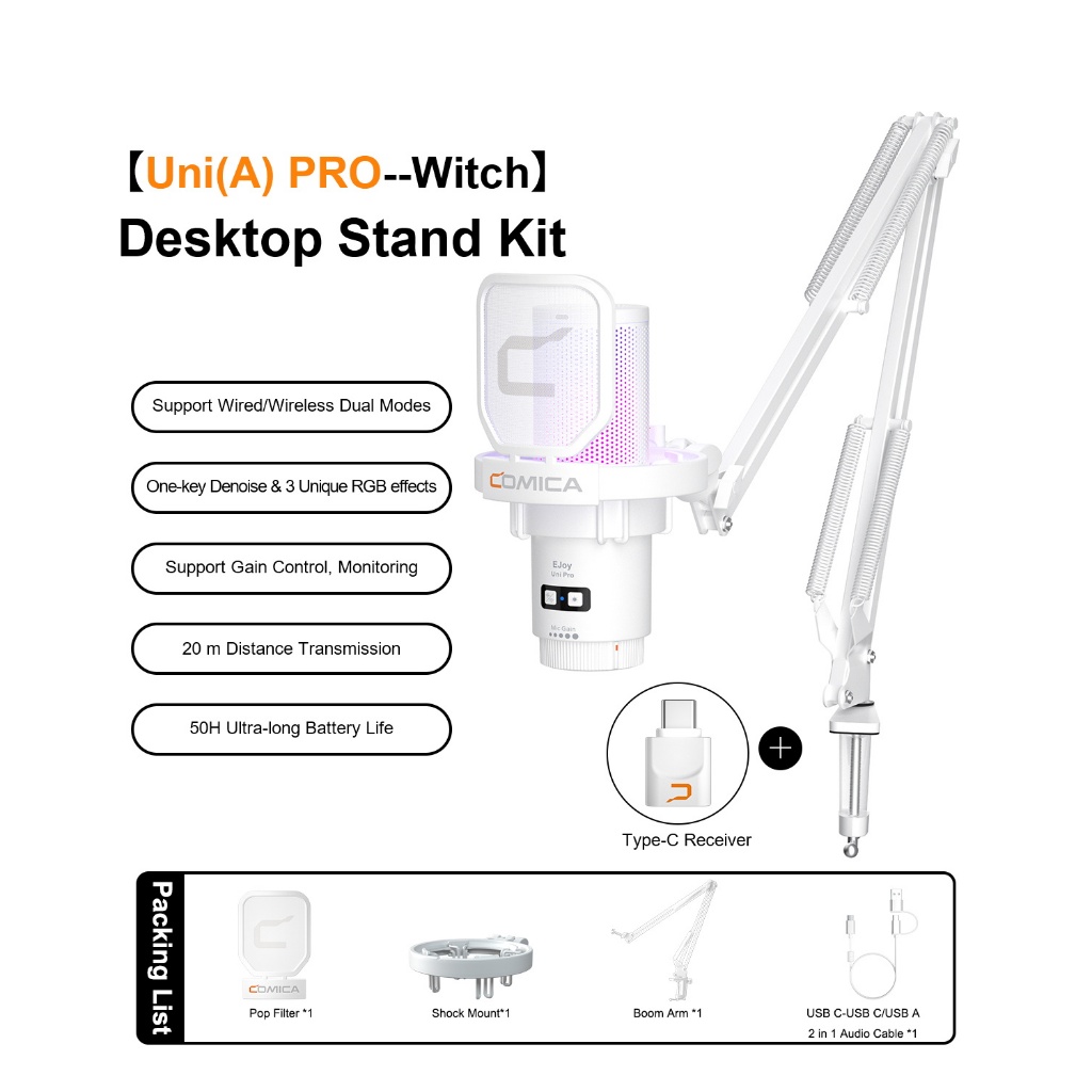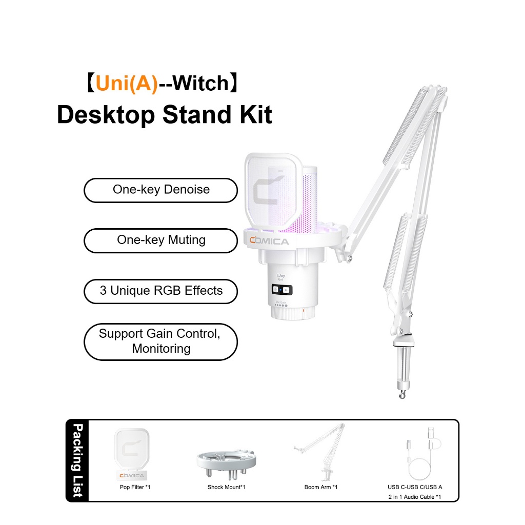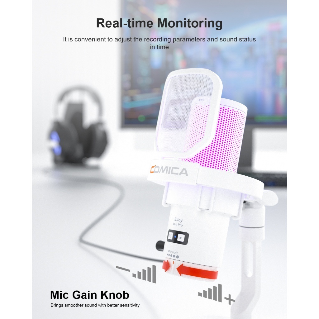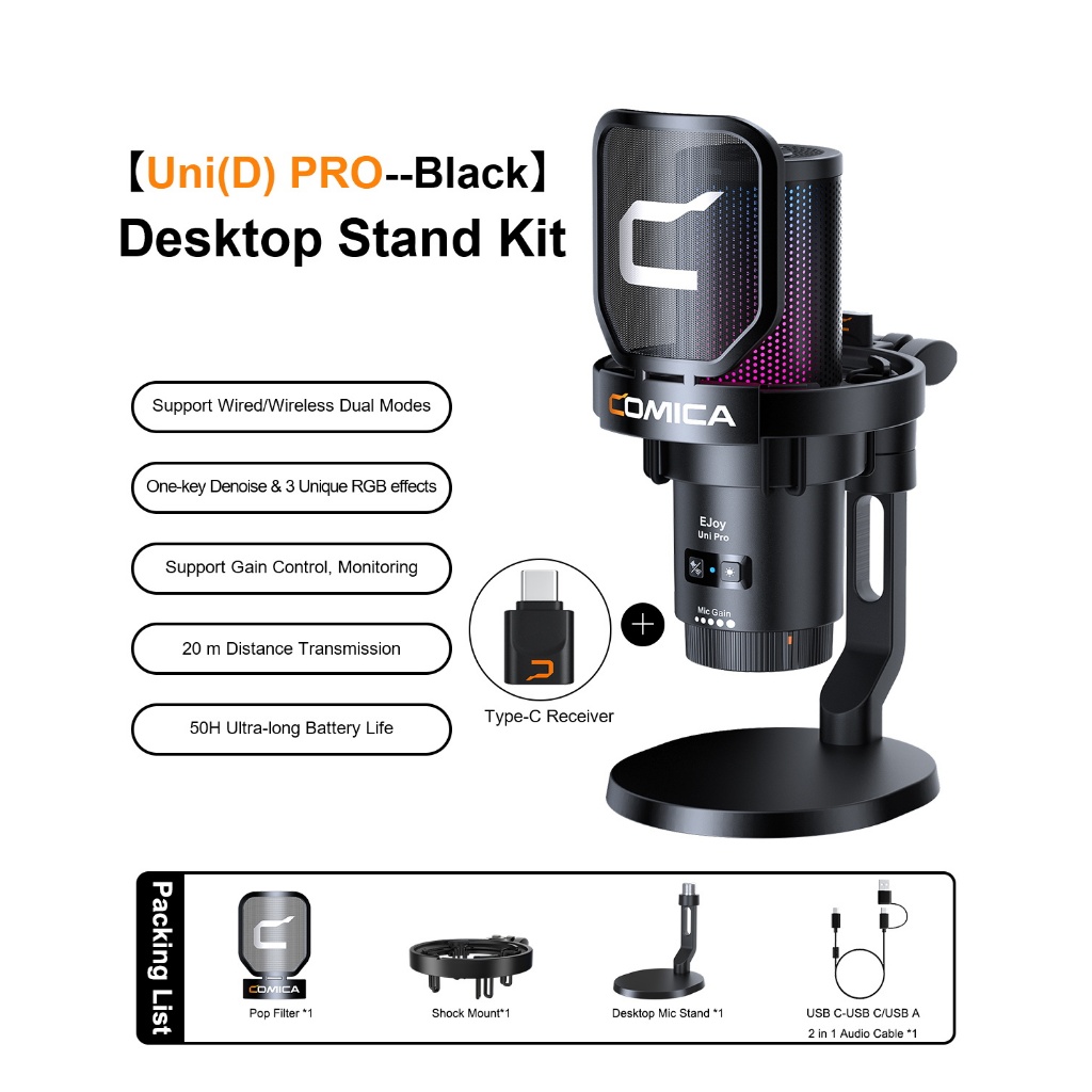 Comica Ejoy Uni PRO Wireless Condenser USB Microphone for PC Laptop Smartphone, Gaming Mic with Noise Cancellation, RGB Lights, Perfect for Live-streaming, Recording
