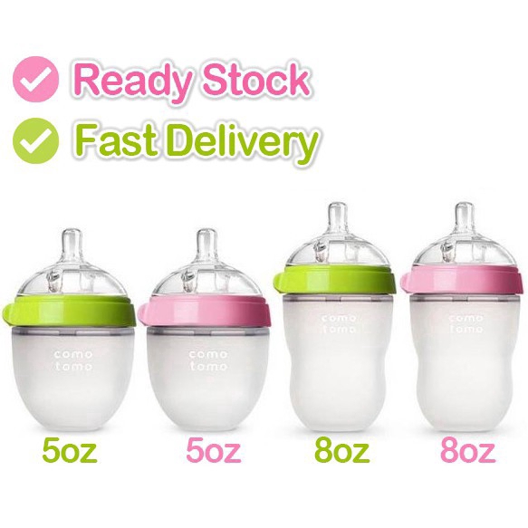 Comotomo Silicone Baby Milk Feeding Nursing Bottle 150ml 250ml Green And Pink