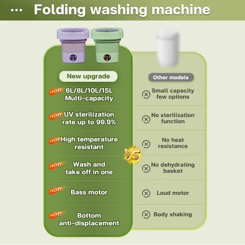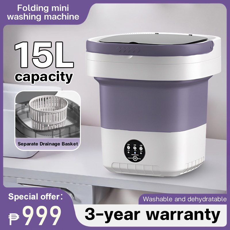 Small Mini Foldable Washing Machine With Dryer Portable Automatic 15L Large Capacity Two In One