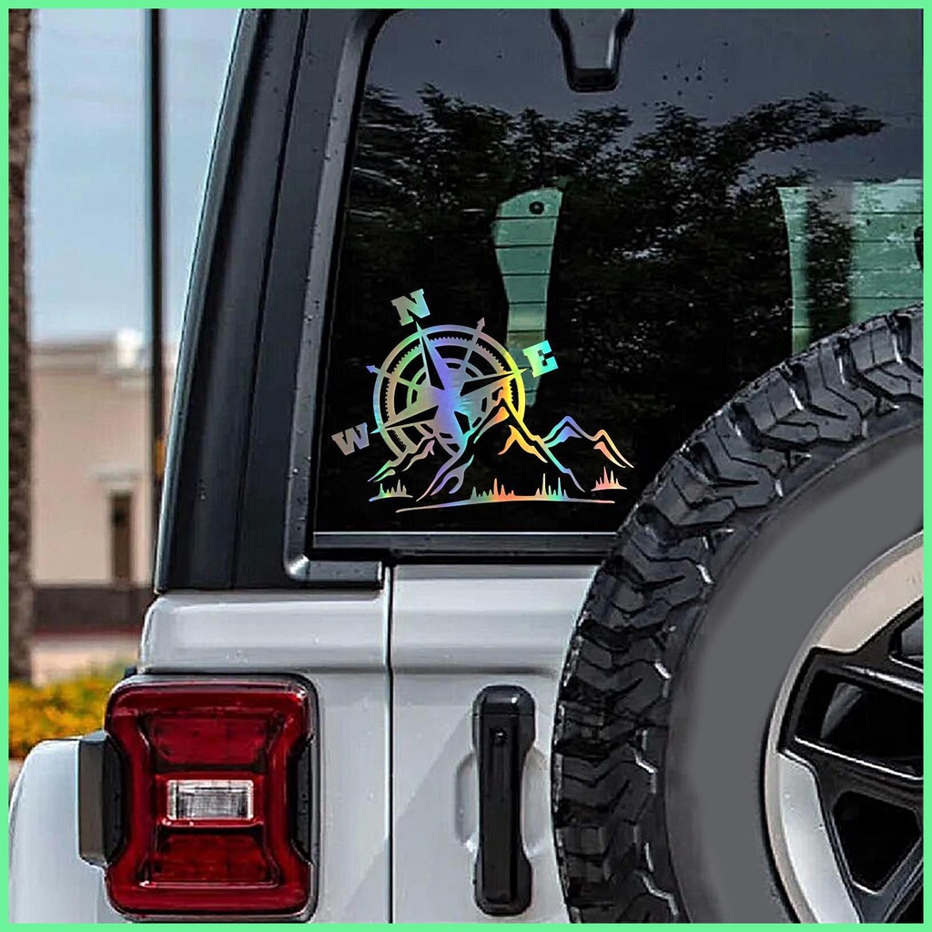 Compass Car Window Decals Compass Trees Mountain Sticker For Car Self-adhesive Window Automotive Cling Motorcycle lofuph