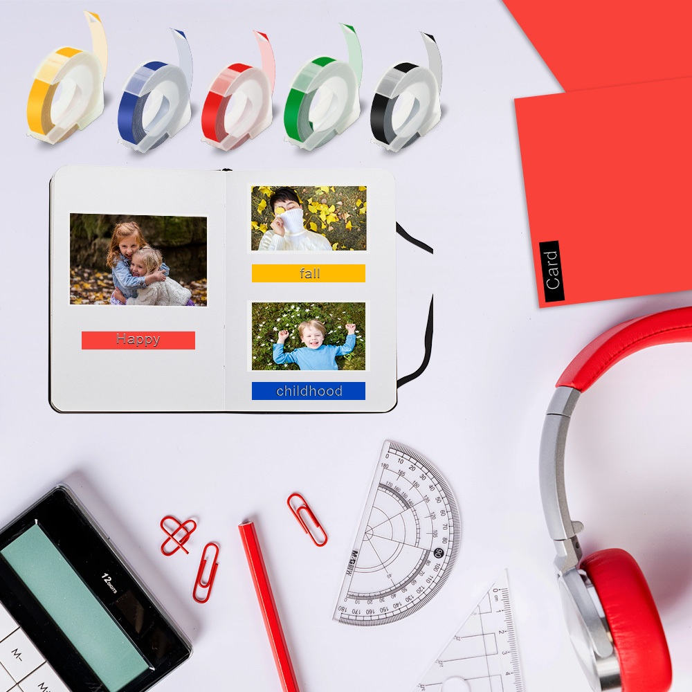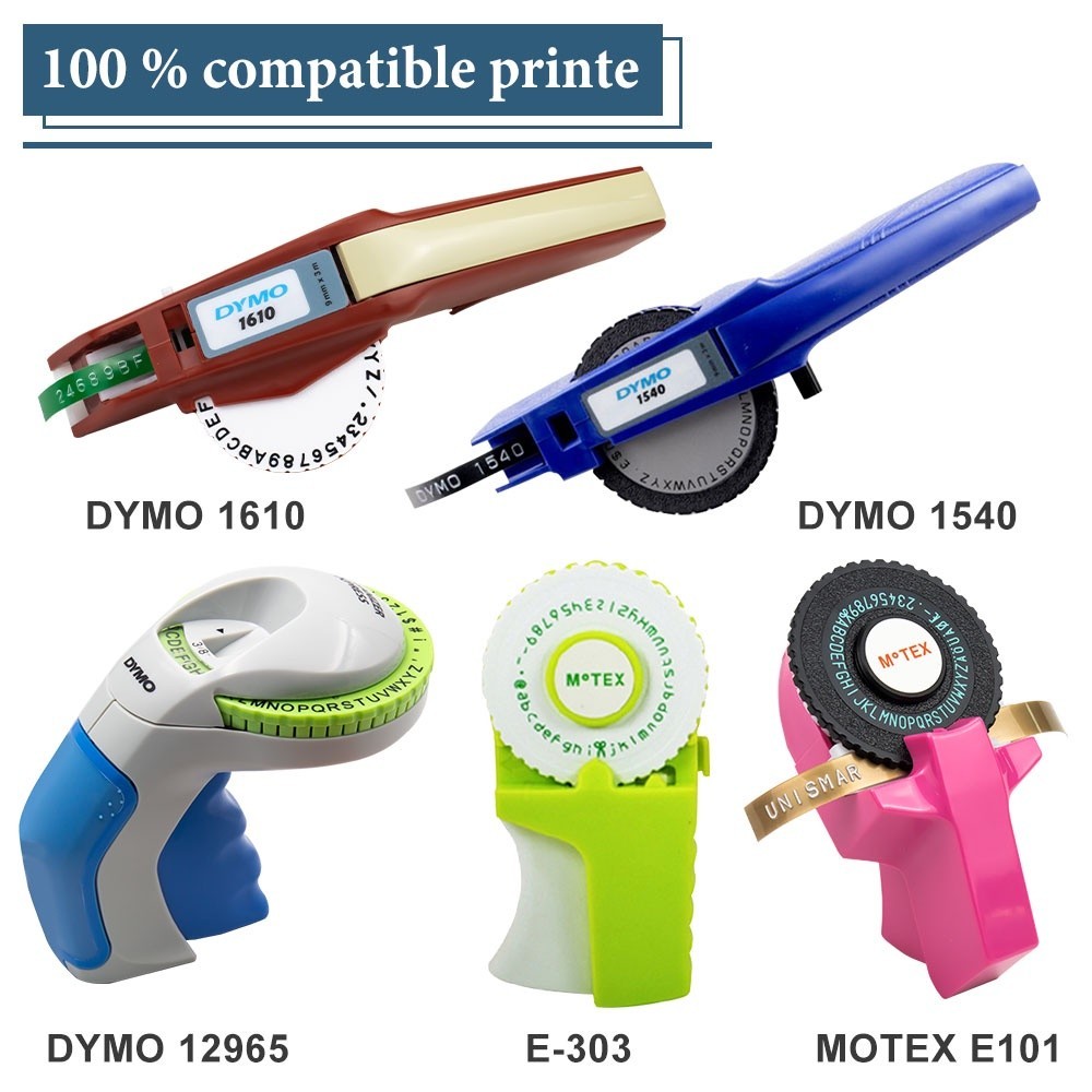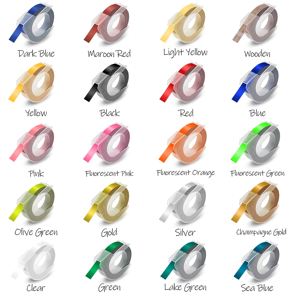 Compatible Dymo Embossing Tape 3D Effect / Motex E101 Refill Label Tape 9mm x 3m for Dymo Organizer Xpress 12965 Omega Home Junior Embosser 1610 1540 1880 Label Maker