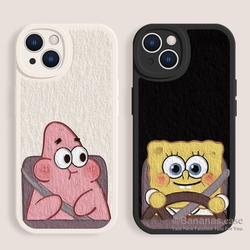 Compatible With iPhone 16 15 14 13 12 11 Pro Max X Xr Xs Max 7 8 Plus SE2020 Phone Case Cute Cartoon Drive Car SpongeBob SquarePants Couple Soft Cover