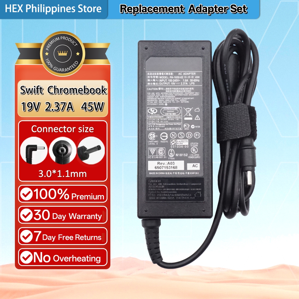 Compatible with Acer Charger 19V 2.37A 45W Aspire Swift/Chromebook/TravelMate Series N19H1 Laptop