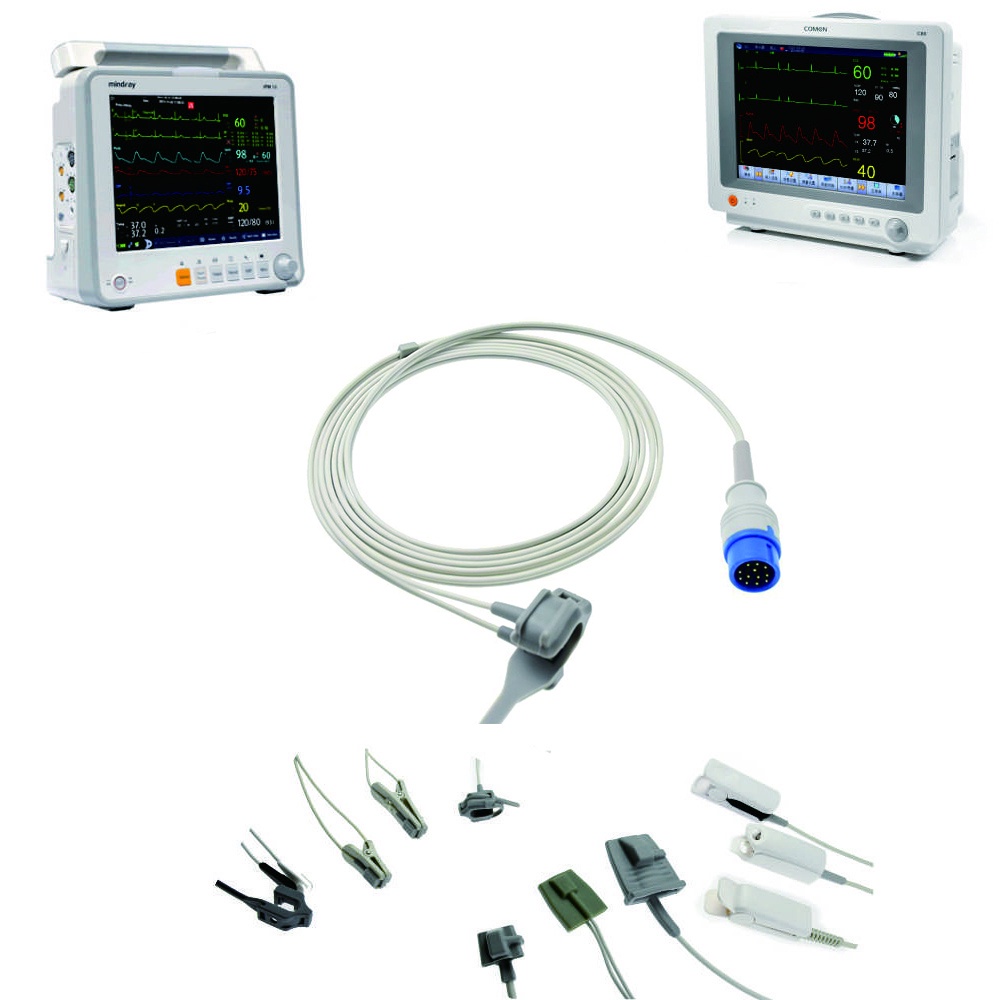 Compatible with Comen C50, C90,12 Pin, Digital Type of Monitor Spo2 Probe Sensor. Reusable Adult and Child Blood Oxygen Connector, Spo2 Sensor Cable for Pulse Oximeter Monitor