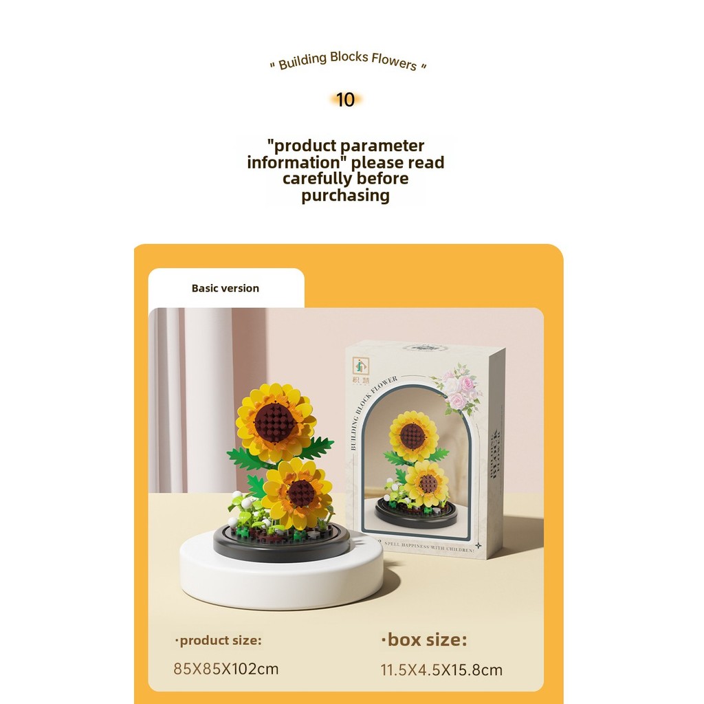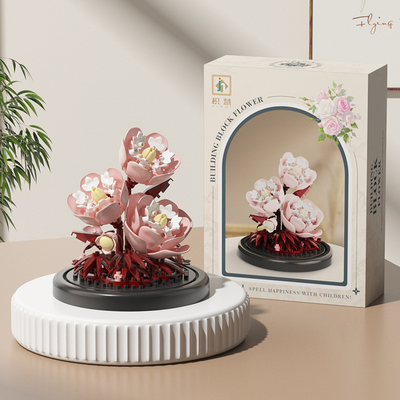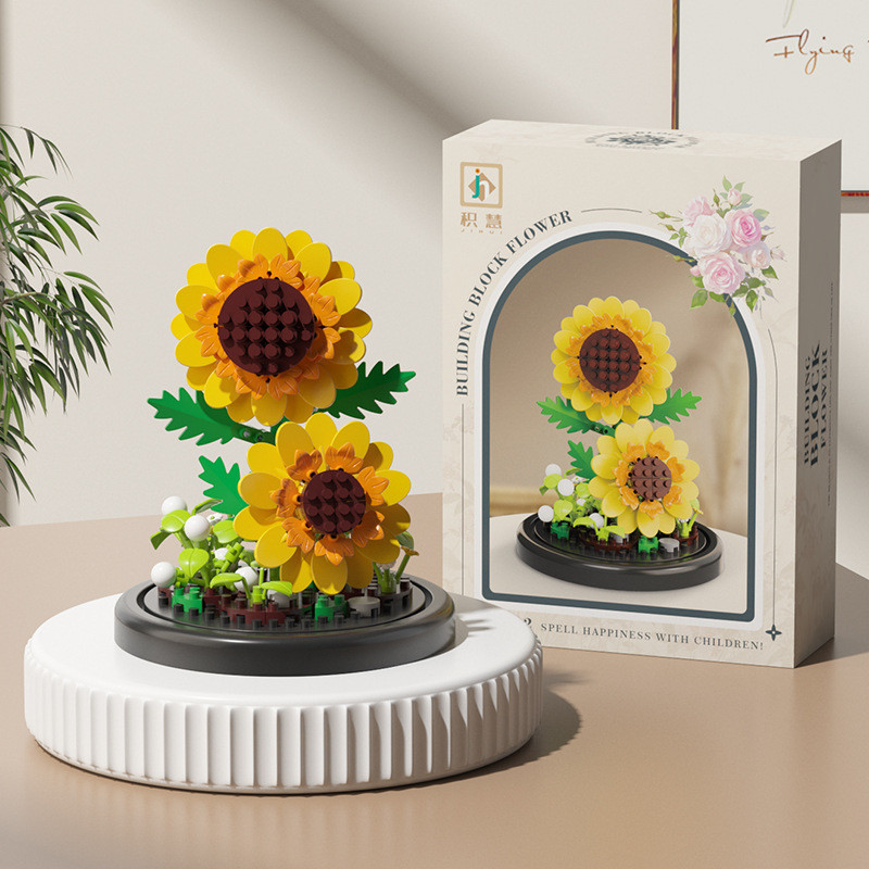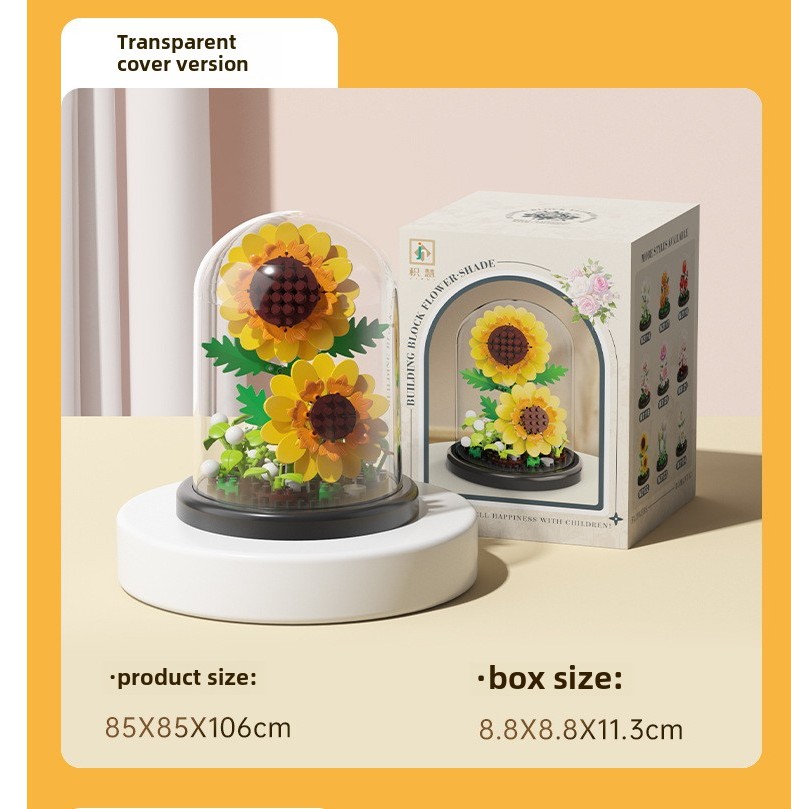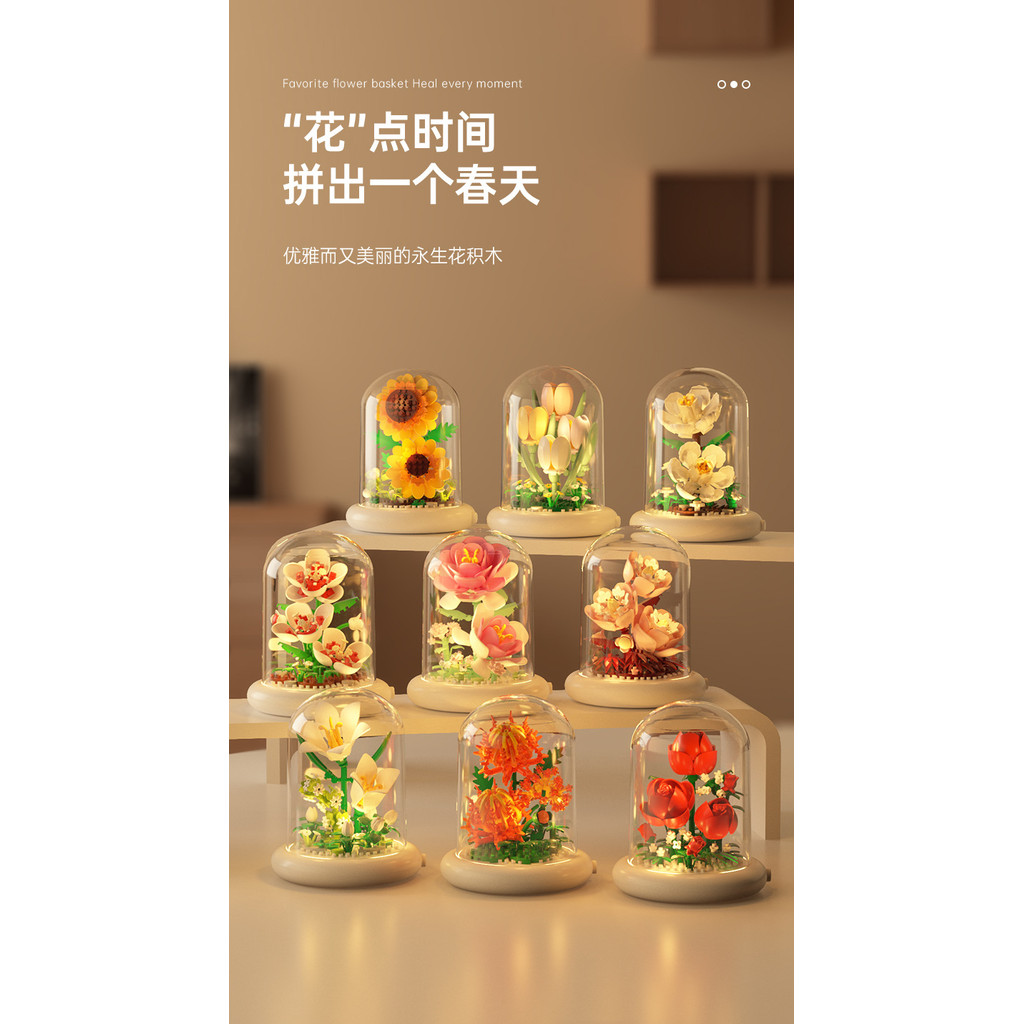Eternal Flowers with light, Christmas gift Accumulated Wood Flowers, Potted Plants, Assembled Toys, kids Gifts flower Building Blocks Sunflower Rose Carnation