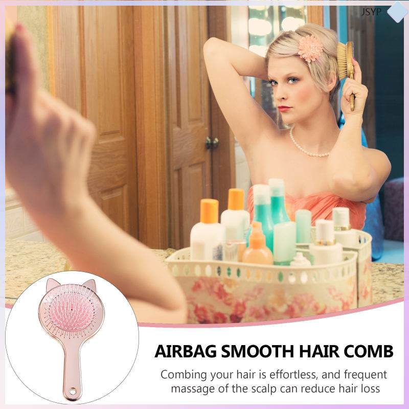 Lightweight Rose Gold Detangler Comb Cat Ear Airbag Hair Brush for Scalp Relaxation junshaoyipin