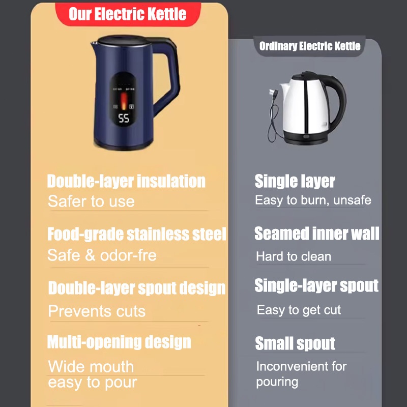 Fast Boiling Electric Kettle 2400W 304 Stainless Steel Safe & Convenient Electric Heater