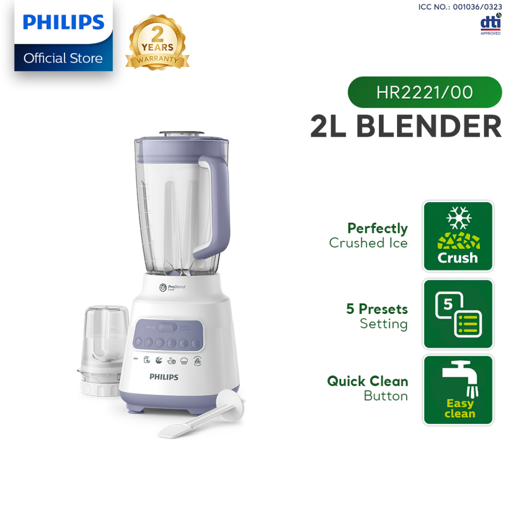 PHILIPS Blender HR2221-00 - ProBlend Crush Technology, 4-star blade and energy efficient motor