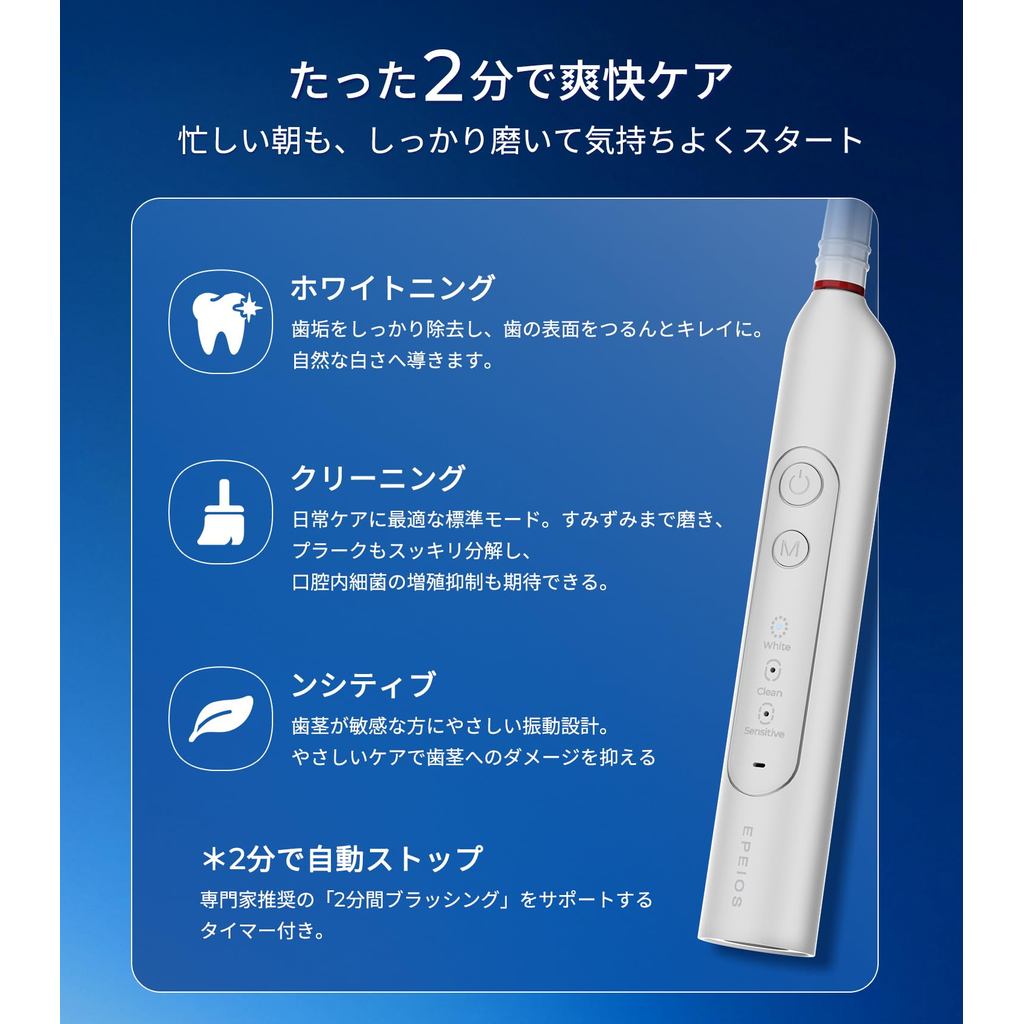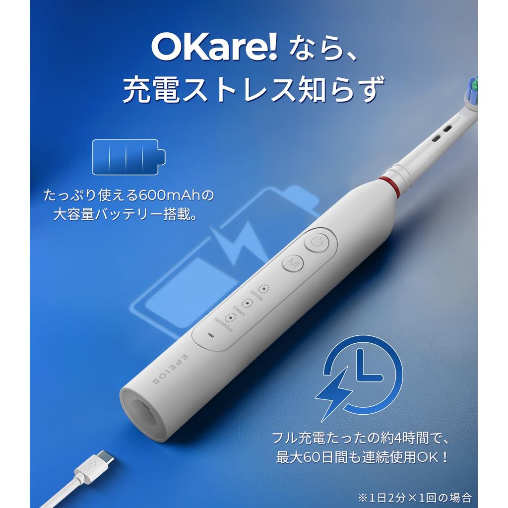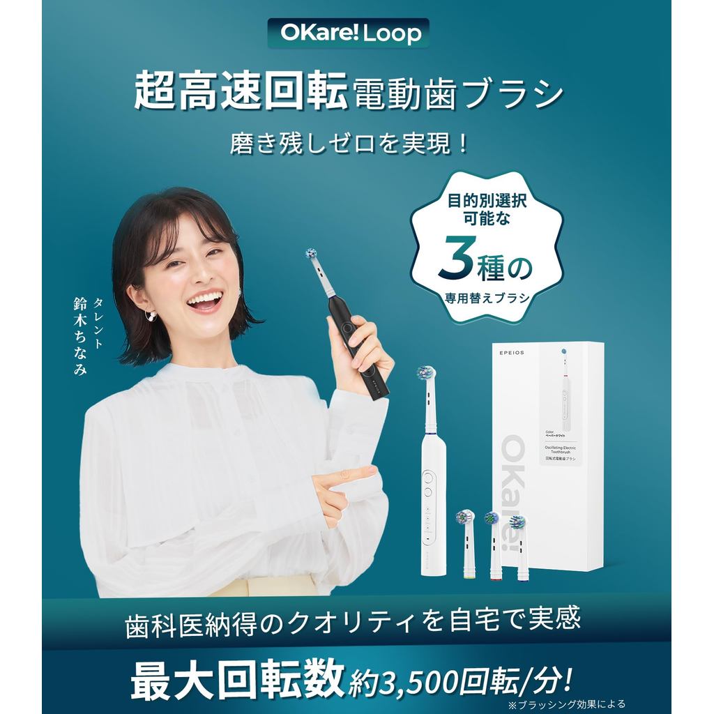 [Direct from Japan]Rotating Electric Toothbrush Epeios Rotating Electric Toothbrush, Rotating Brush Head Toothbrush Electric, 3 Brush Heads, IPX7 Waterproof, Type-C Rechargeable, 60-Day Use OKare! Loop Birthday Gift Present