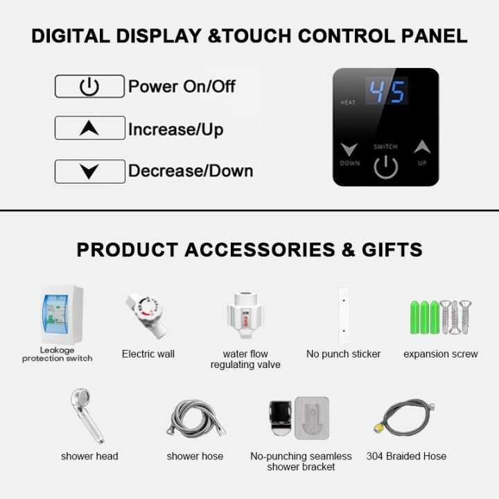 Electric SOHO water heater heating faucet shower head bathroom LED display 6500W 220V Temperature