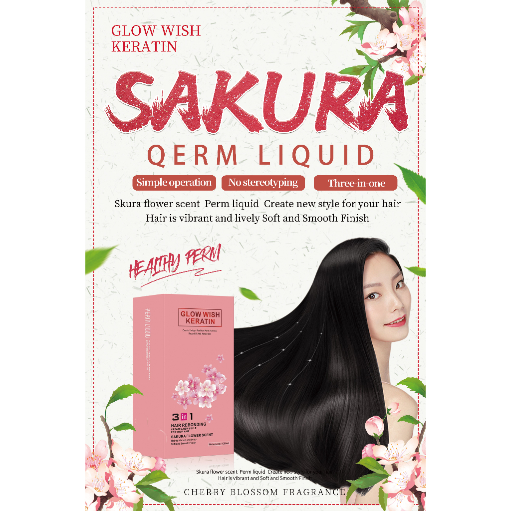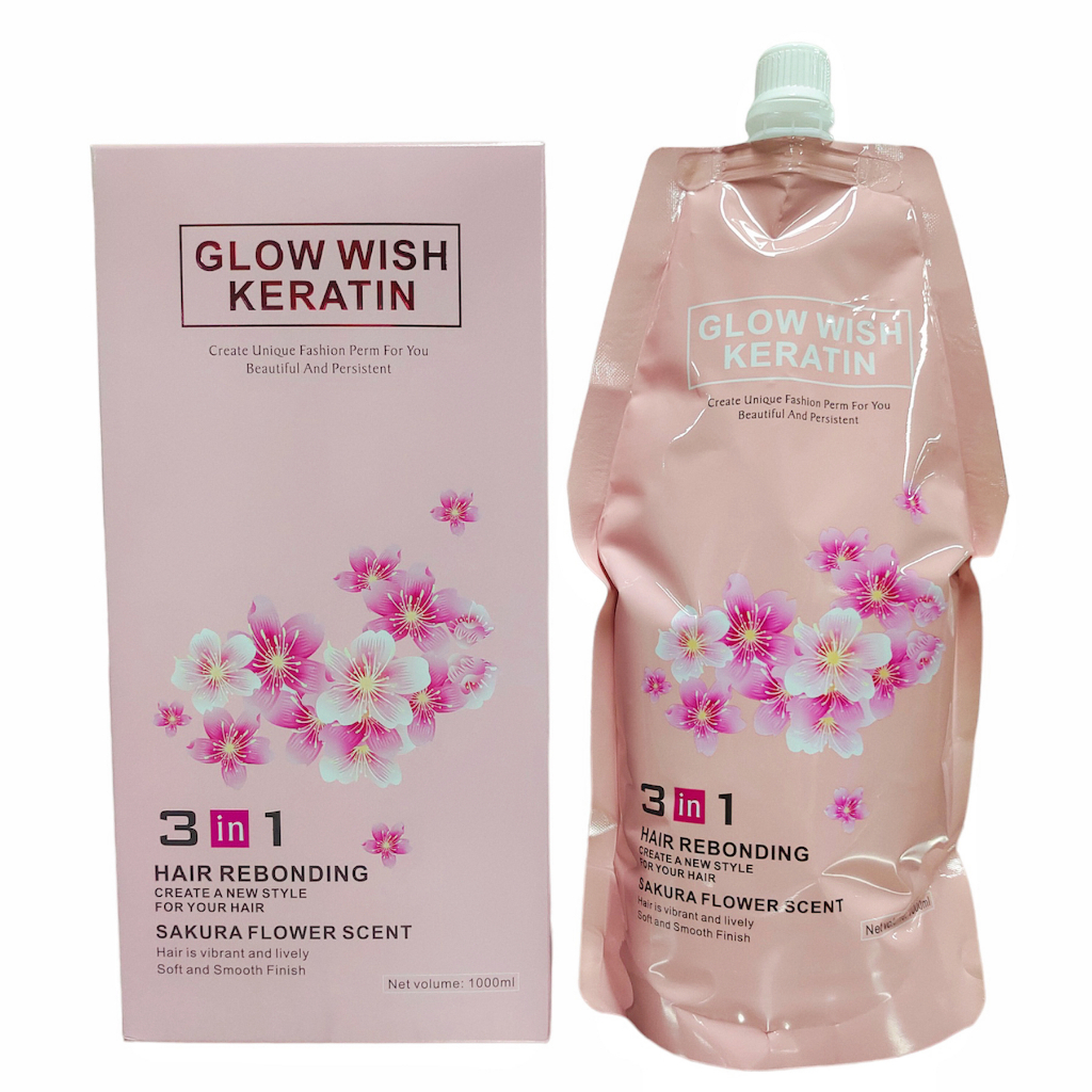 Hot Sale Glow Wish Keratin Sakura 3in1 Rebonding Hair Straighter Silky Straight 1000ML